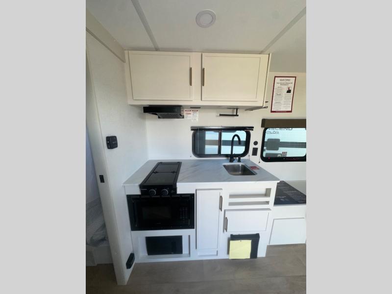 With any Transcend One travel trailer by Grand Design, you will enjoy lightweight towing thanks to their single-axle. There are many interior comforts to make camping easier than ever, such as recessed lighting, residential countertops, and a 6' 6" interior height. Each model is constructed with a heated and enclosed underbelly with suspended tanks, a moisture barrier floor enclosure, and Thermofoil over the roof and front cap for added protection. And a JBL sound system will let you listen to tunes as you visit under the power awning with a Fusion light!