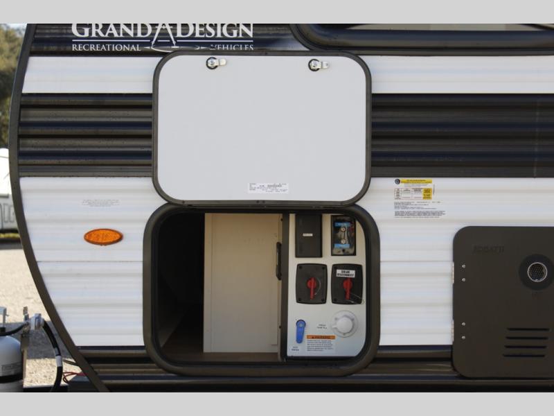 With any Transcend One travel trailer by Grand Design, you will enjoy lightweight towing thanks to their single-axle. There are many interior comforts to make camping easier than ever, such as recessed lighting, residential countertops, and a 6' 6" interior height. Each model is constructed with a heated and enclosed underbelly with suspended tanks, a moisture barrier floor enclosure, and Thermofoil over the roof and front cap for added protection. And a JBL sound system will let you listen to tunes as you visit under the power awning with a Fusion light!