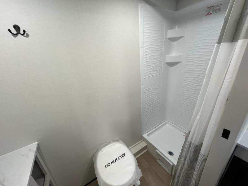 Travel in this 131DL model and step inside through the sturdy aluminum entry steps and you'll be greeted by a versatile 60" x 80" Murphy bed that doubles as a comfortable seating area during the day—perfect for relaxing with your furry companion, thanks to the included pet dish. In the center, the kitchen offers all the essentials for preparing a delicious meal, featuring a microwave, 2-burner range, 3.3 cu. ft. refrigerator, and overhead cabinets for added storage. At the rear, enjoy the convenience of a full bathroom complete with a walk-in shower and foot-flush toilet, making life on the road both comfortable and functional.
