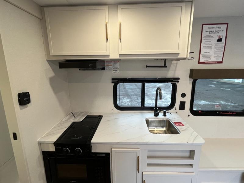 With any Transcend One travel trailer by Grand Design, you will enjoy lightweight towing thanks to their single-axle. There are many interior comforts to make camping easier than ever, such as recessed lighting, residential countertops, and a 6' 6" interior height. Each model is constructed with a heated and enclosed underbelly with suspended tanks, a moisture barrier floor enclosure, and Thermofoil over the roof and front cap for added protection. And a JBL sound system will let you listen to tunes as you visit under the power awning with a Fusion light!