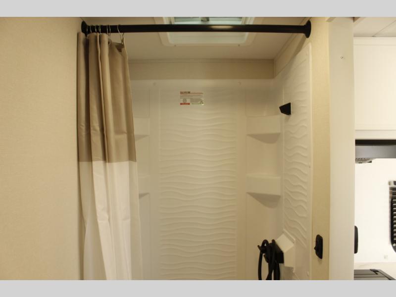 With any Transcend One travel trailer by Grand Design, you will enjoy lightweight towing thanks to their single-axle. There are many interior comforts to make camping easier than ever, such as recessed lighting, residential countertops, and a 6' 6" interior height. Each model is constructed with a heated and enclosed underbelly with suspended tanks, a moisture barrier floor enclosure, and Thermofoil over the roof and front cap for added protection. And a JBL sound system will let you listen to tunes as you visit under the power awning with a Fusion light!