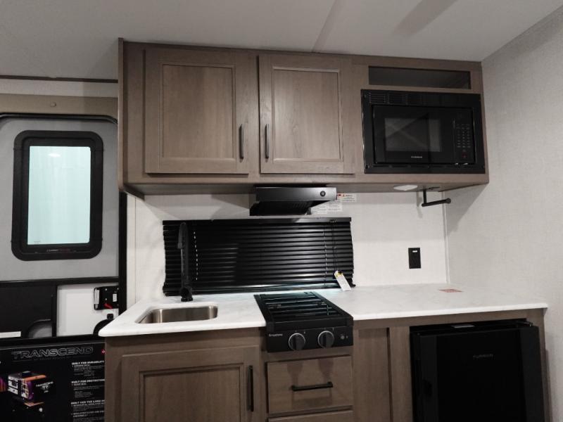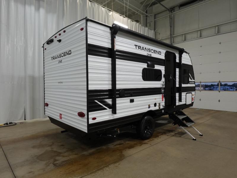 With any Transcend One travel trailer by Grand Design, you will enjoy lightweight towing thanks to their single-axle. There are many interior comforts to make camping easier than ever, such as recessed lighting, residential countertops, and a 6' 6" interior height. Each model is constructed with a heated and enclosed underbelly with suspended tanks, a moisture barrier floor enclosure, and Thermofoil over the roof and front cap for added protection. And a JBL sound system will let you listen to tunes as you visit under the power awning with a Fusion light!