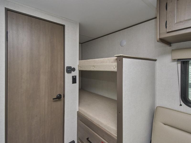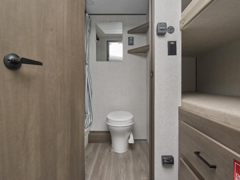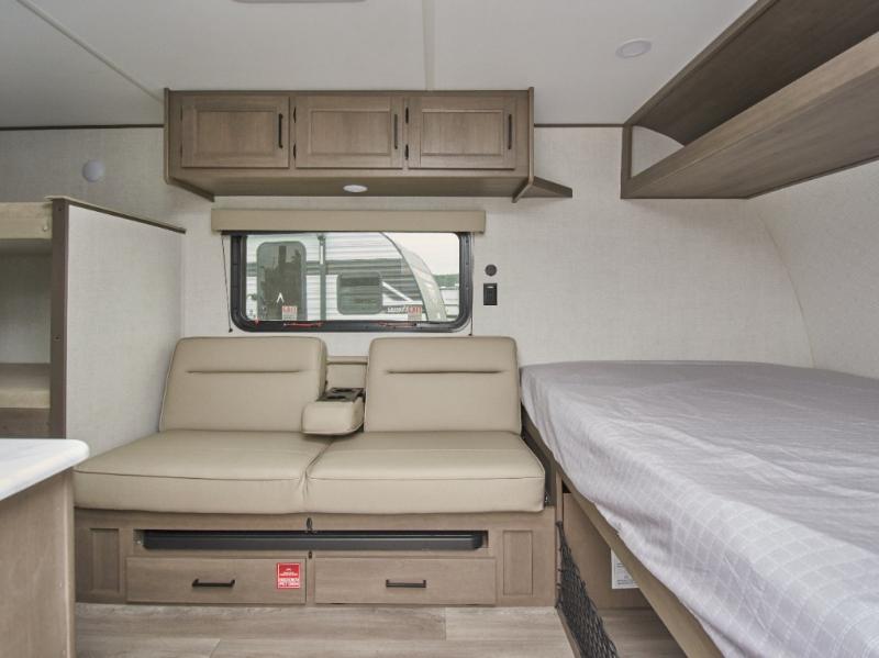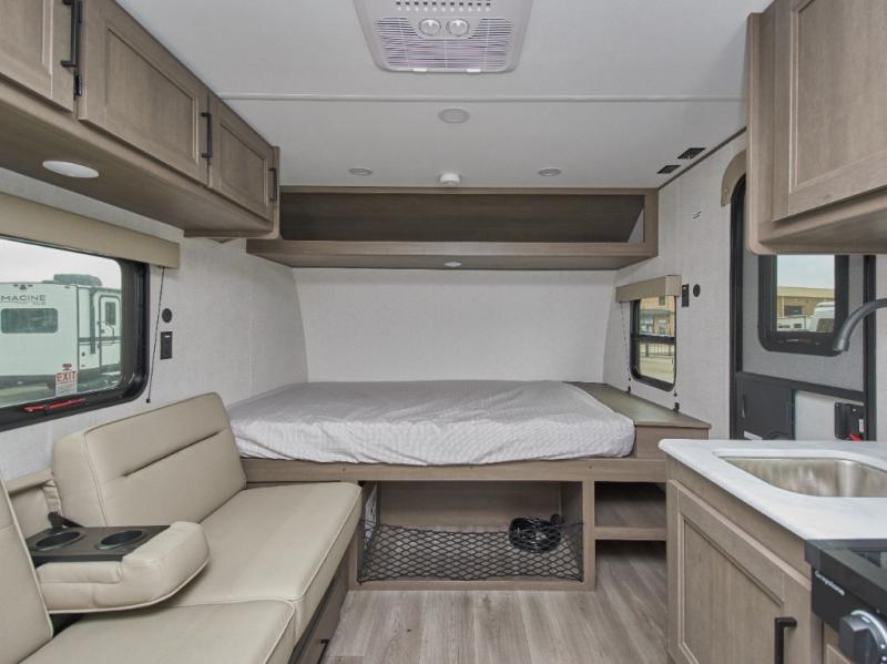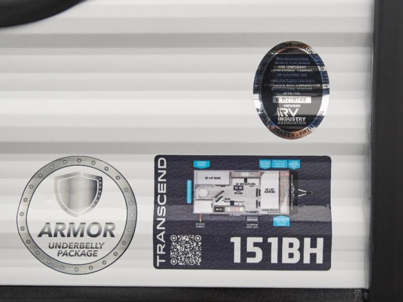 Make every camping trip effortless with the Transcend One 151BH. This lightweight, single-axle travel trailer is built for easy towing and maximum comfort. Inside, you'll find a cozy front queen bed with hidden storage, a 66" jackknife sofa for extra sleeping space, and a private bathroom conveniently located next to the bunks.