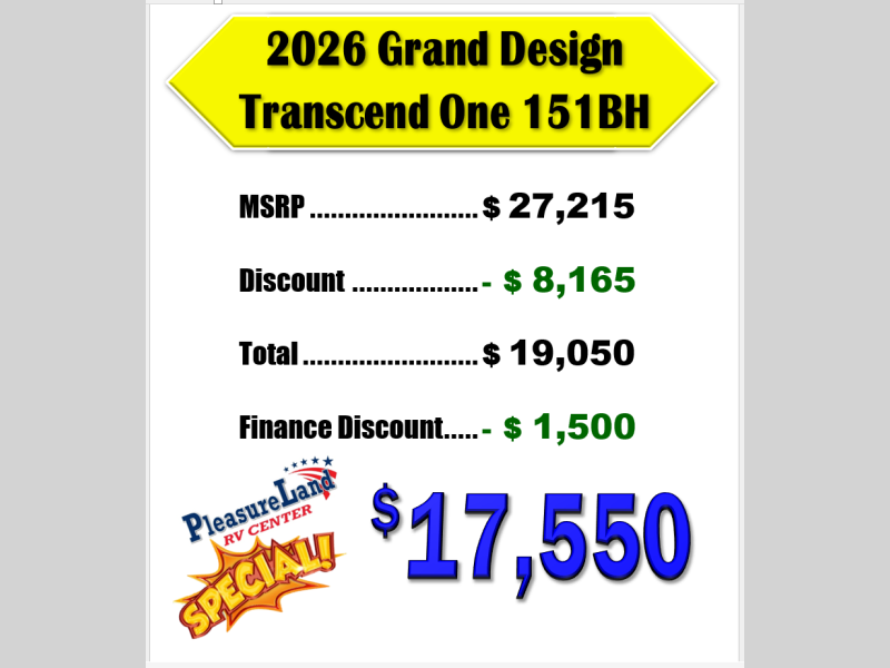 New 2026 Grand Design Transcend One 151BH Travel Trailer