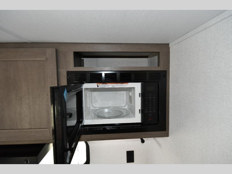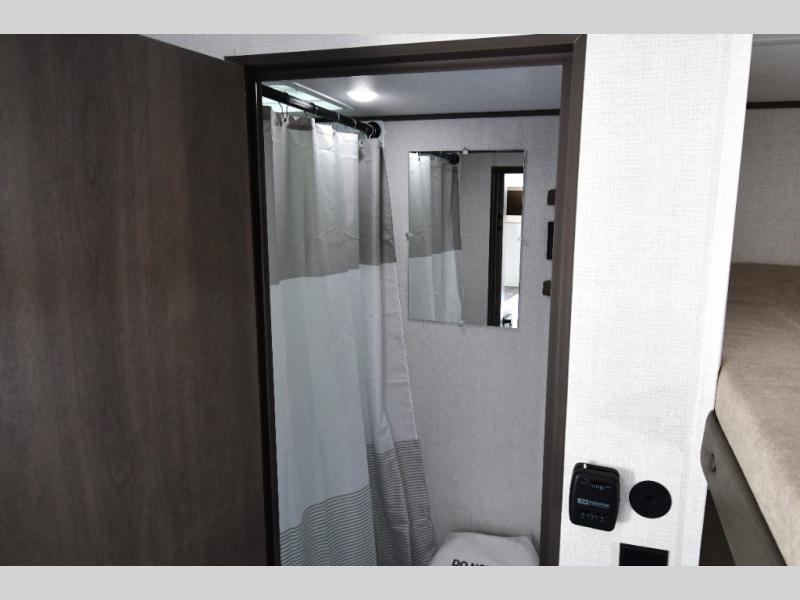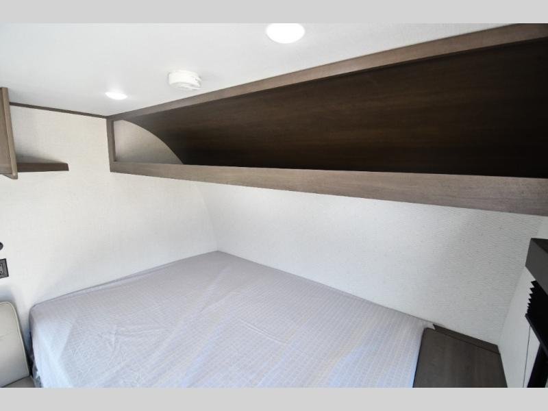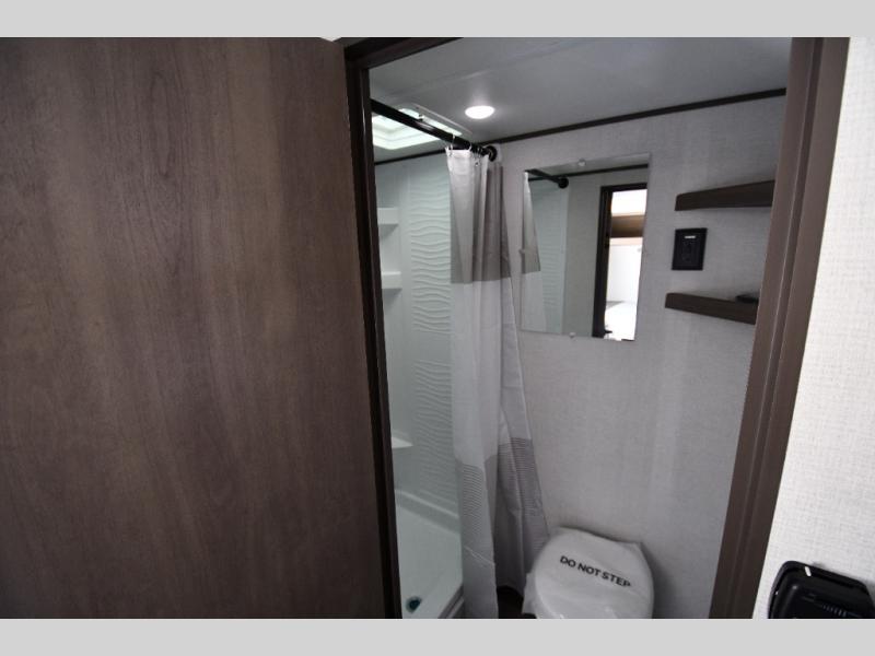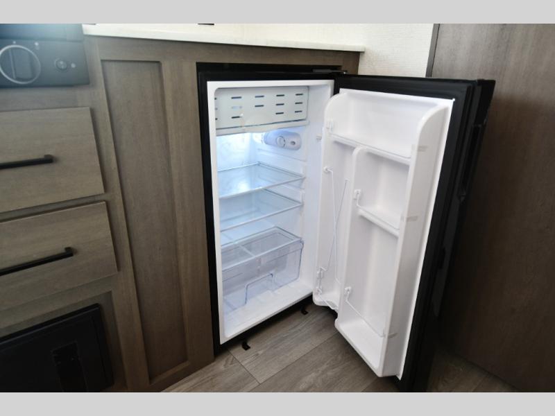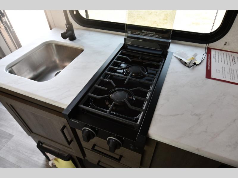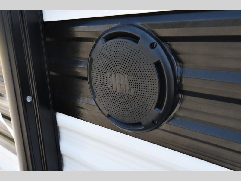 Lightweight towing and thoughtful construction make every trip smooth and worry-free. Single-axle design, recessed lighting, residential-style countertops, and 6'6" interior height create a spacious, comfortable feel. A heated and enclosed underbelly with suspended tanks, moisture barrier flooring, and Thermofoil roof and front cap provide durability and protection year-round. Entertainment is easy with the JBL sound system, enhanced by Fusion lighting under the awning. Upgraded packages including the Construction and Convenience Package, Lifestyle Package, Solar Prep, Elite Kitchen, Power and Entertainment, and 4-Season Protection ensure every adventure is convenient, safe, and enjoyable.