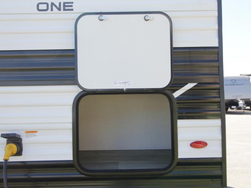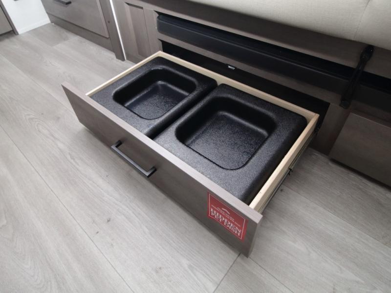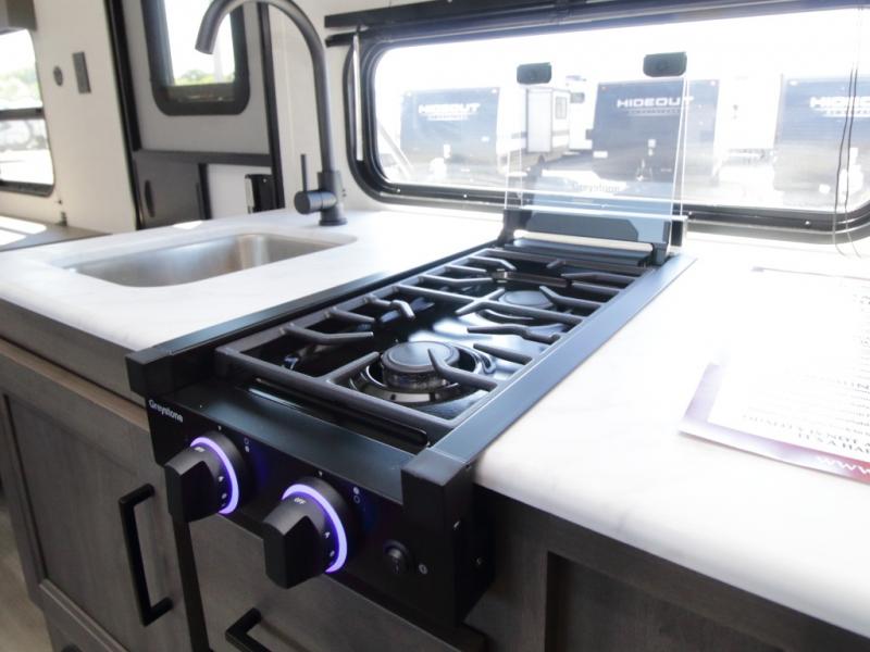 Built for durability and comfort, the Transcend One features residential countertops, recessed lighting, and 6' 6" interior height. The heated and enclosed underbelly, moisture barrier floor enclosure, and Thermofoil roof and front cap provide four-season protection. Plus, the JBL sound system and 10' power awning with LED lighting create the perfect space to relax at the campsite.