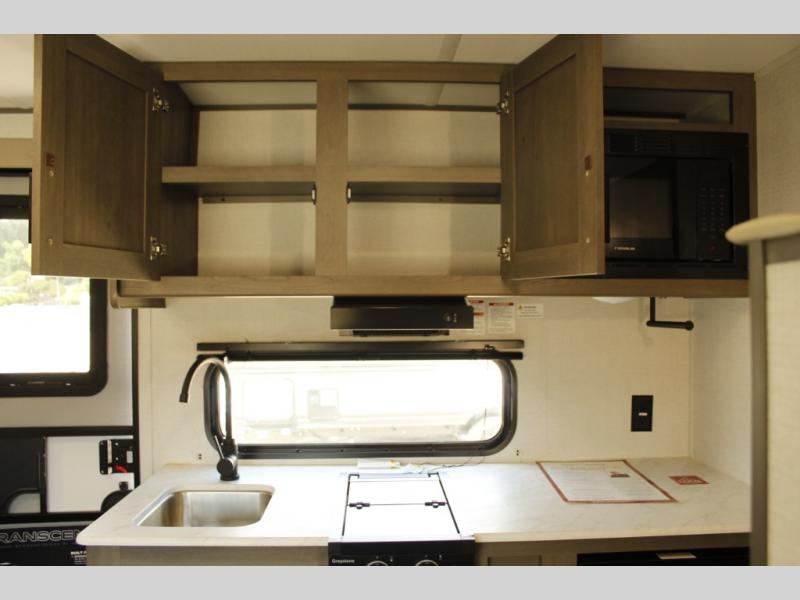 With any Transcend One travel trailer by Grand Design, you will enjoy lightweight towing thanks to their single-axle. There are many interior comforts to make camping easier than ever, such as recessed lighting, residential countertops, and a 6' 6" interior height. Each model is constructed with a heated and enclosed underbelly with suspended tanks, a moisture barrier floor enclosure, and Thermofoil over the roof and front cap for added protection. And a JBL sound system will let you listen to tunes as you visit under the power awning with a Fusion light!