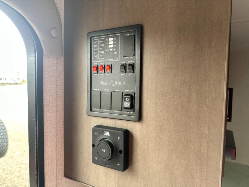 With any Transcend One travel trailer by Grand Design, you will enjoy lightweight towing thanks to their single-axle. There are many interior comforts to make camping easier than ever, such as recessed lighting, residential countertops, and a 6' 6" interior height. Each model is constructed with a heated and enclosed underbelly with suspended tanks, a moisture barrier floor enclosure, and Thermofoil over the roof and front cap for added protection. And a JBL sound system will let you listen to tunes as you visit under the power awning with a Fusion light!