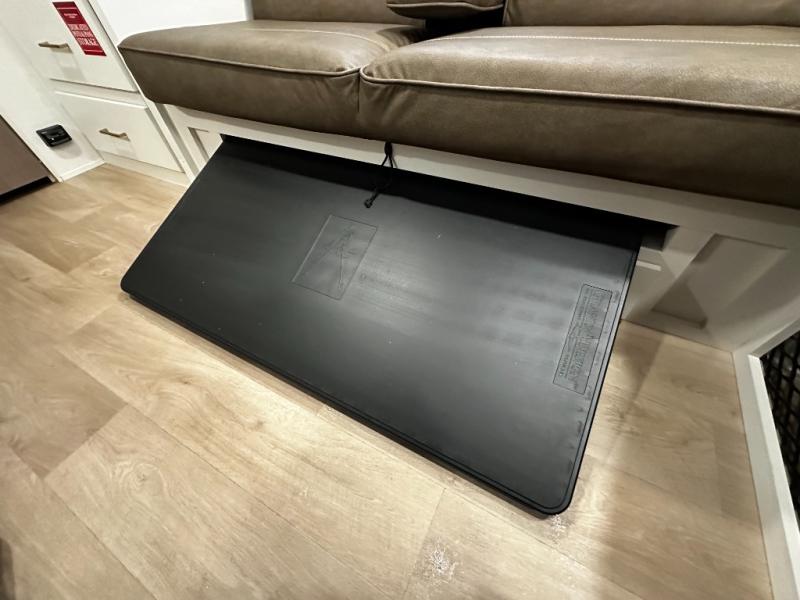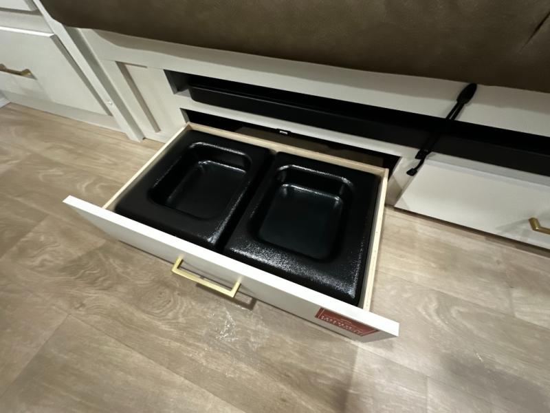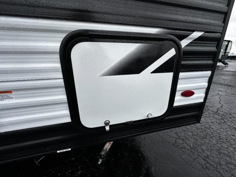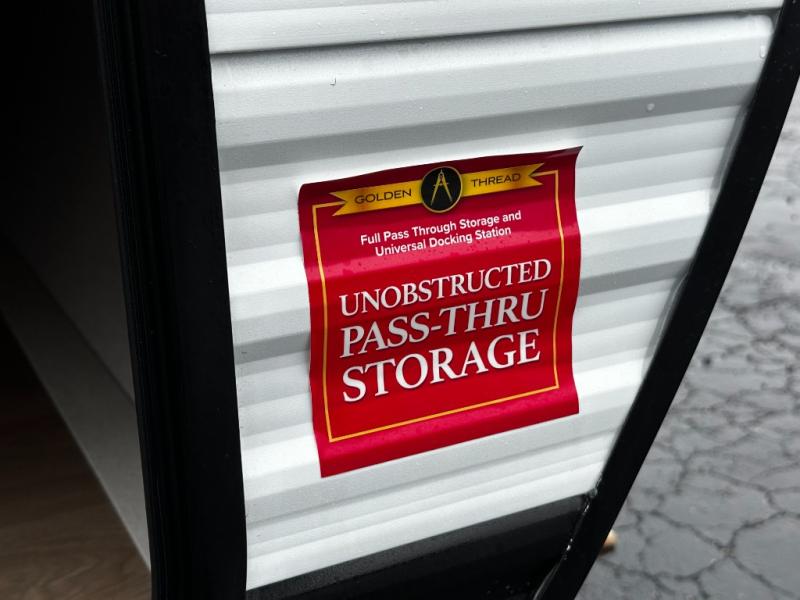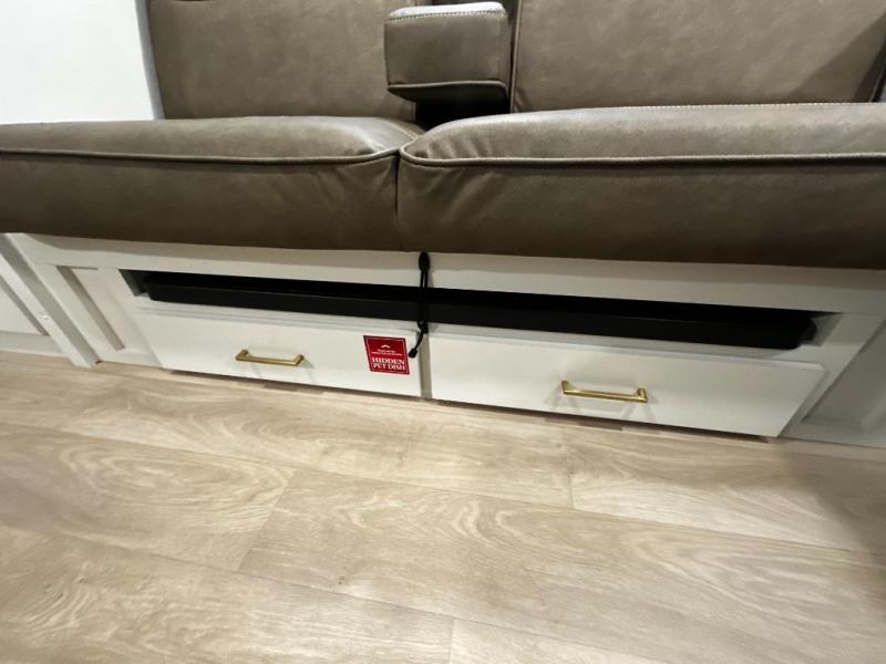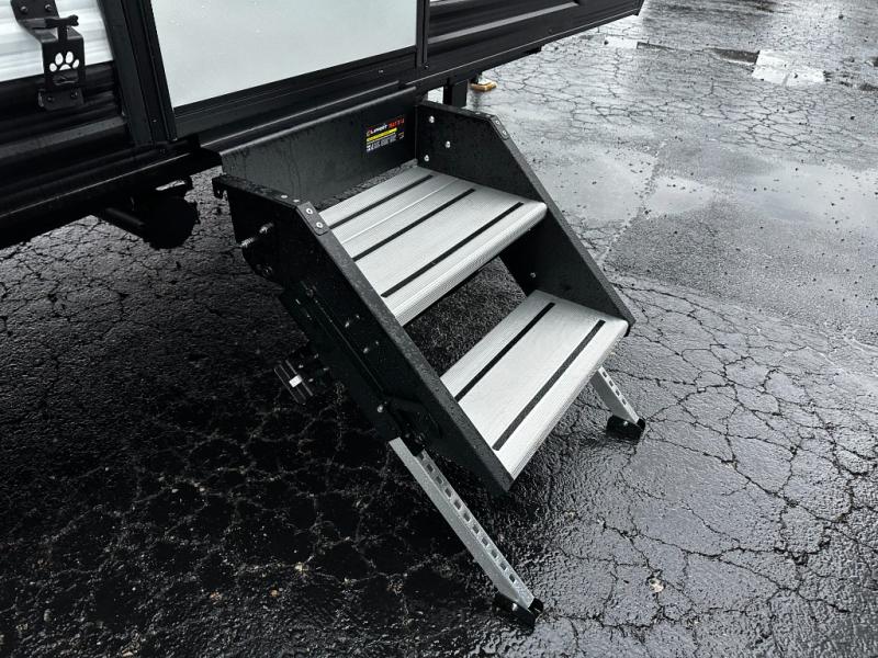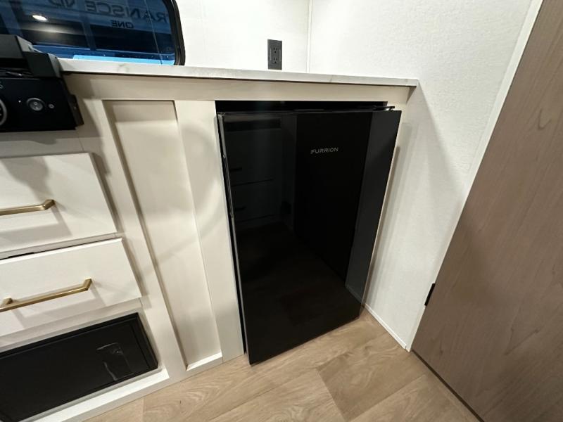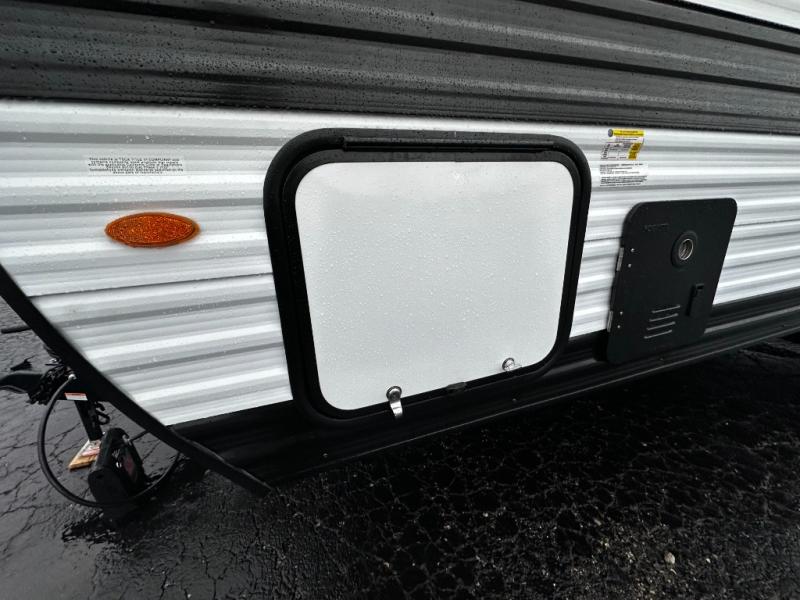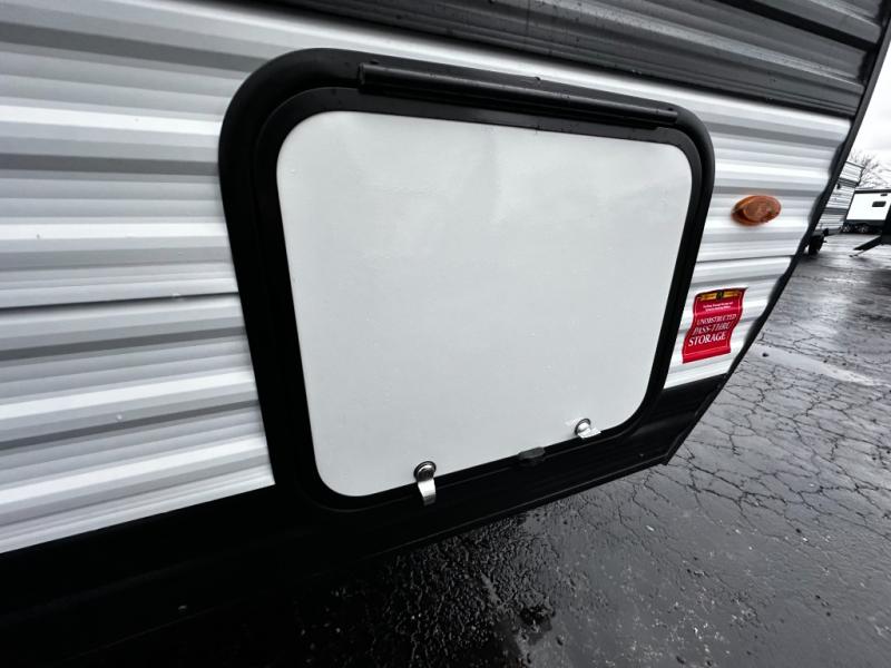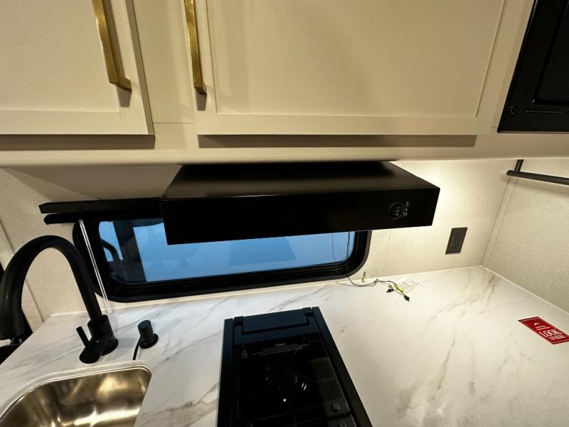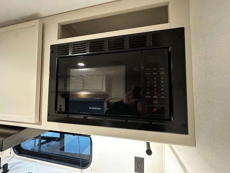 The heart of this RV is the well-equipped kitchen, complete with a three-burner cooktop, microwave, refrigerator, and generous counter space that makes meal preparation easy and enjoyable. Ample storage throughout the trailer lets you bring all your favorite gear and travel essentials, while durable, easy-to-clean surfaces stand up to the rigors of life on the road.