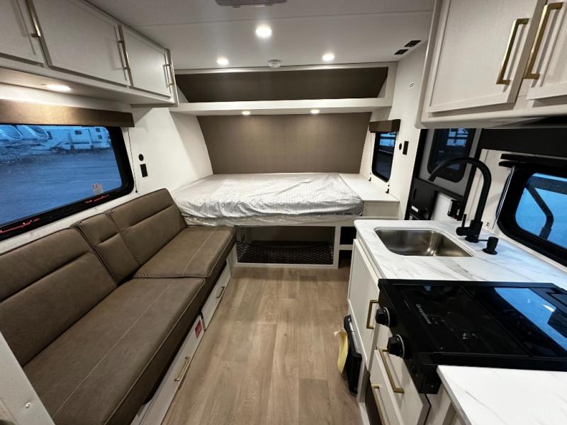 Step inside and feel right at home. The Transcend One 151BH features a comfortable front queen bed and rear bunk beds, making it ideal for families or groups who want flexible sleeping arrangements without compromising living space. The intuitive floorplan ensures a natural flow from the living area to the kitchen and bathroom, maximizing comfort and functionality for everyday use on the road.