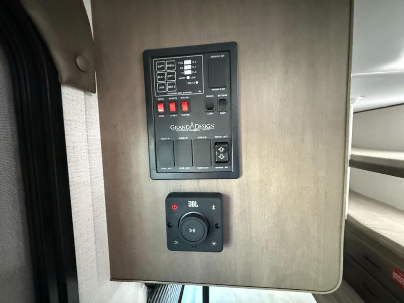 With any Transcend One travel trailer by Grand Design, you will enjoy lightweight towing thanks to their single-axle. There are many interior comforts to make camping easier than ever, such as recessed lighting, residential countertops, and a 6' 6" interior height. Each model is constructed with a heated and enclosed underbelly with suspended tanks, a moisture barrier floor enclosure, and Thermofoil over the roof and front cap for added protection. And a JBL sound system will let you listen to tunes as you visit under the power awning with a Fusion light!