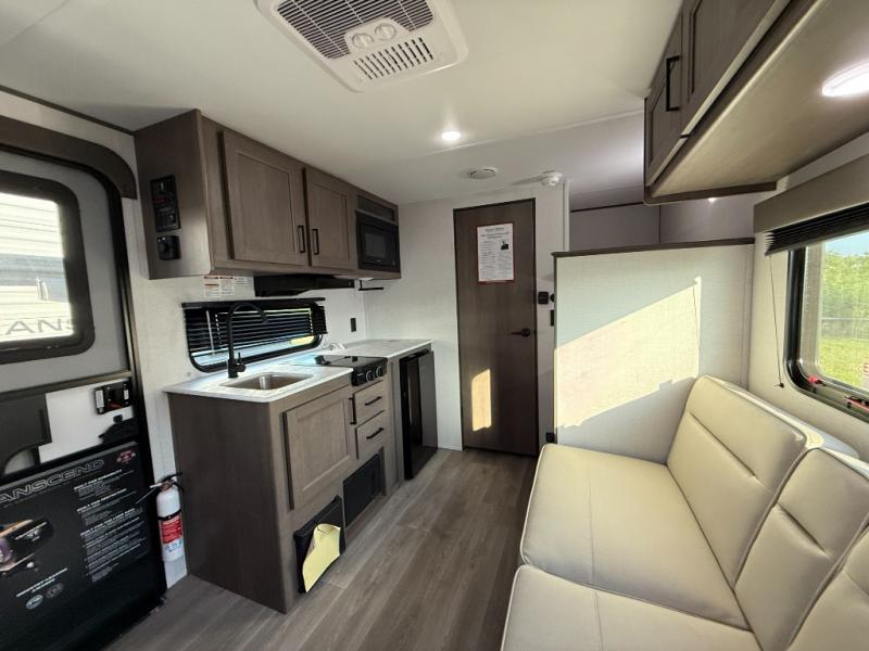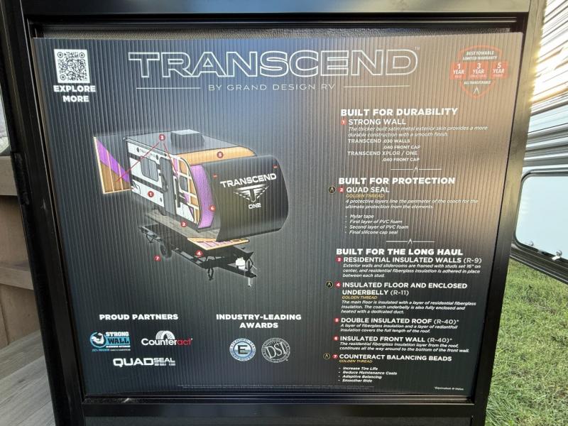 With any Transcend One travel trailer by Grand Design, you will enjoy lightweight towing thanks to their single-axle. There are many interior comforts to make camping easier than ever, such as recessed lighting, residential countertops, and a 6' 6" interior height. Each model is constructed with a heated and enclosed underbelly with suspended tanks, a moisture barrier floor enclosure, and Thermofoil over the roof and front cap for added protection. And a JBL sound system will let you listen to tunes as you visit under the power awning with a Fusion light!