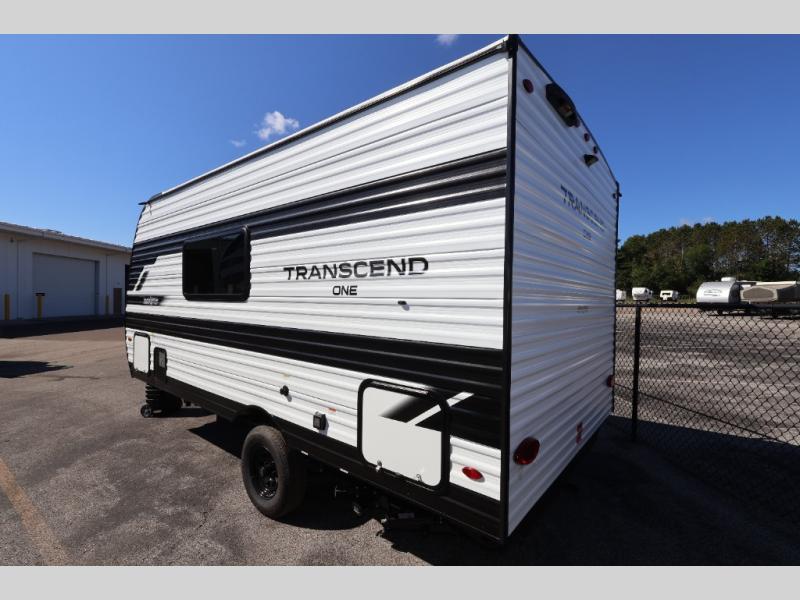 With any Transcend One travel trailer by Grand Design, you will enjoy lightweight towing thanks to their single-axle. There are many interior comforts to make camping easier than ever, such as recessed lighting, residential countertops, and a 6' 6" interior height. Each model is constructed with a heated and enclosed underbelly with suspended tanks, a moisture barrier floor enclosure, and Thermofoil over the roof and front cap for added protection. And a JBL sound system will let you listen to tunes as you visit under the power awning with a Fusion light!