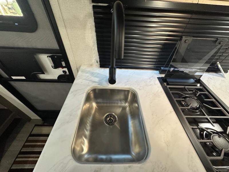 With any Transcend One travel trailer by Grand Design, you will enjoy lightweight towing thanks to their single-axle. There are many interior comforts to make camping easier than ever, such as recessed lighting, residential countertops, and a 6' 6" interior height. Each model is constructed with a heated and enclosed underbelly with suspended tanks, a moisture barrier floor enclosure, and Thermofoil over the roof and front cap for added protection. And a JBL sound system will let you listen to tunes as you visit under the power awning with a Fusion light!