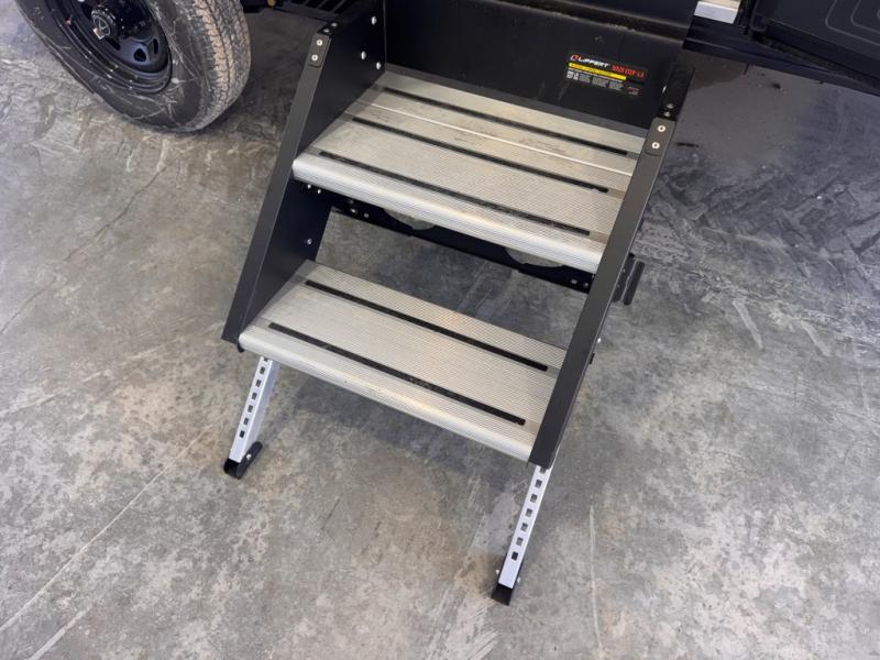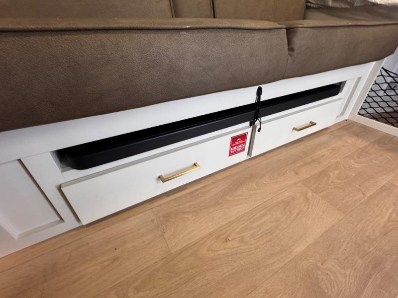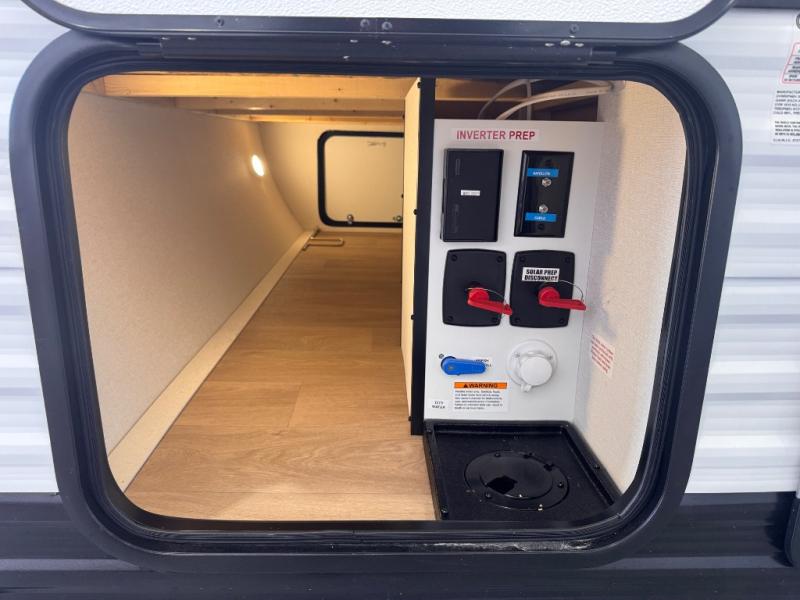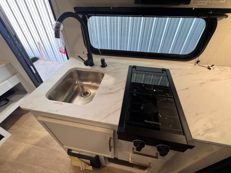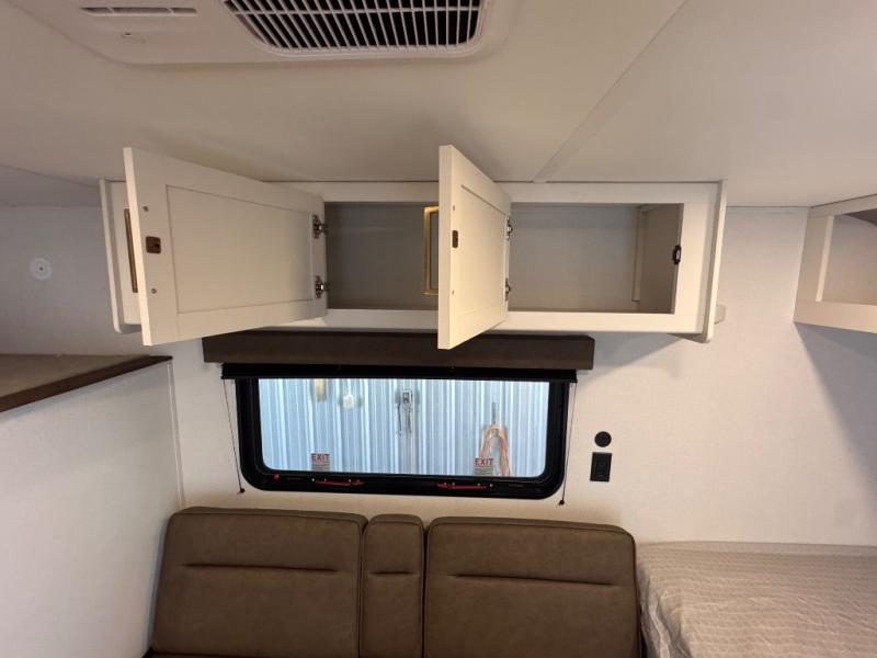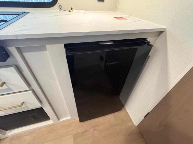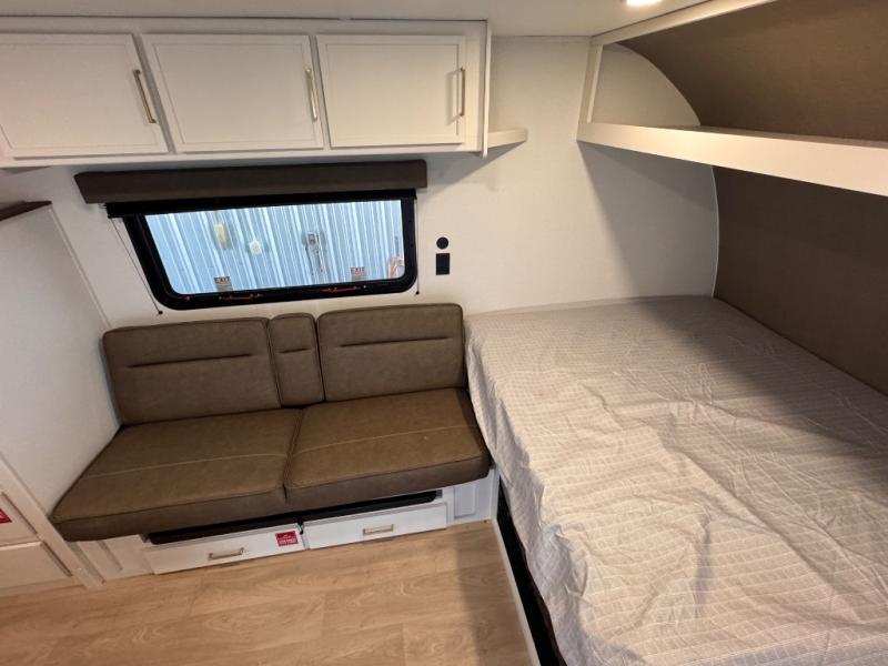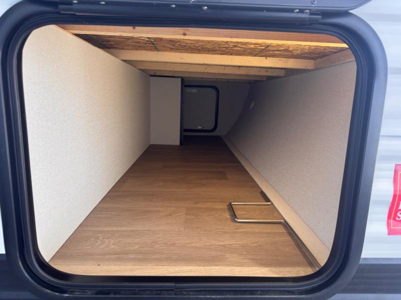 Camping trips to the lake have never been easier than with this travel trailer! The 28" x 67" bunks are right next to the private bath for easy nighttime use, and the front queen bed includes hidden storage for your things. There is also a 66" Jack knife sofa that provides a little more sleeping space for guests. A full kitchen lets you cook meals each day and there is an exterior LP quick connect if you want to fire up your own propane grill.