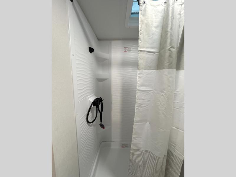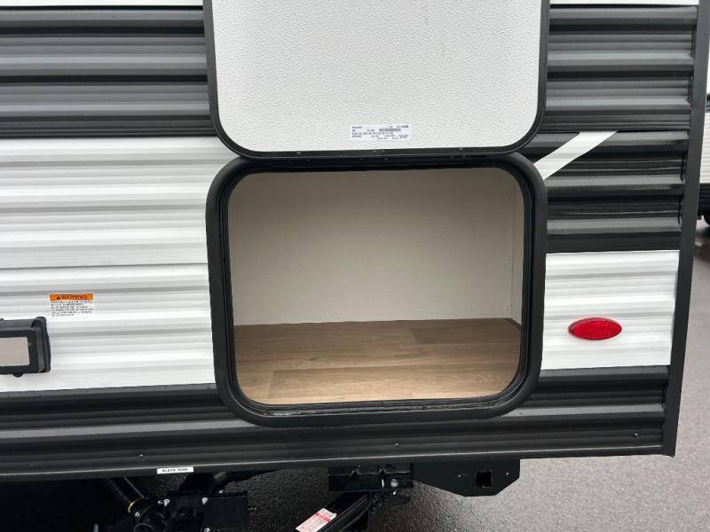 Camping trips to the lake have never been easier than with this travel trailer! The 28" x 67" bunks are right next to the private bath for easy nighttime use, and the front queen bed includes hidden storage for your things. There is also a 66" Jack knife sofa that provides a little more sleeping space for guests. A kitchen lets you cook meals each day and there is an exterior LP quick connect if you want to fire up your own propane grill.