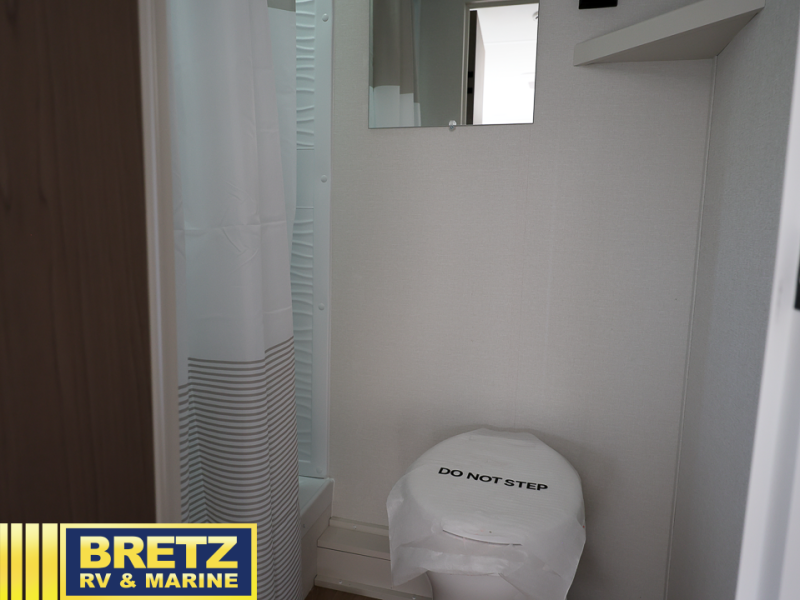 Camping trips to the lake have never been easier than with this travel trailer! The 28" x 67" bunks are right next to the private bath for easy nighttime use, and the front queen bed includes hidden storage for your things. There is also a 66" Jack knife sofa that provides a little more sleeping space for guests. A kitchen lets you cook meals each day and there is an exterior LP quick connect if you want to fire up your own propane grill.