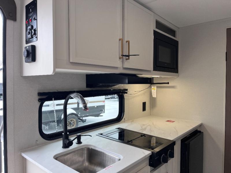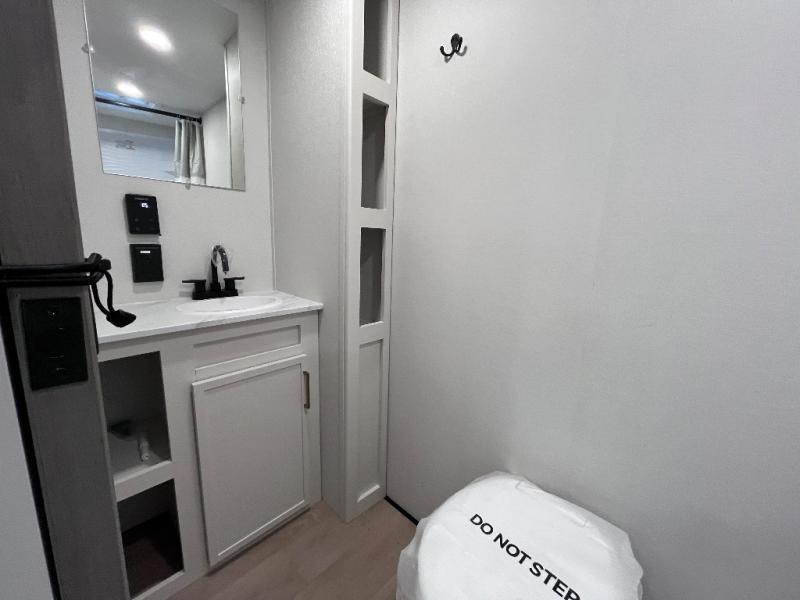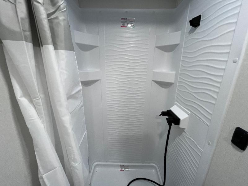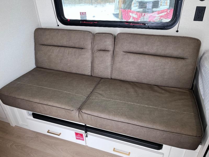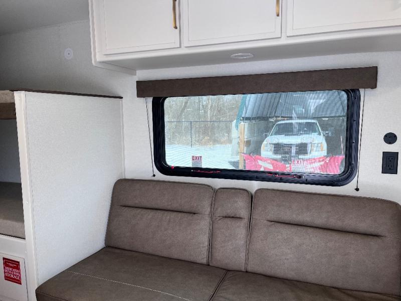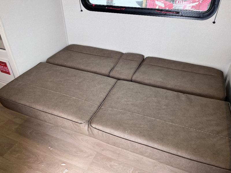 Camping trips to the lake have never been easier than with this travel trailer! The 28" x 67" bunks are right next to the private bath for easy nighttime use, and the front queen bed includes hidden storage for your things. There is also a 66" Jack knife sofa that provides a little more sleeping space for guests. A kitchen lets you cook meals each day and there is an exterior LP quick connect if you want to fire up your own propane grill.