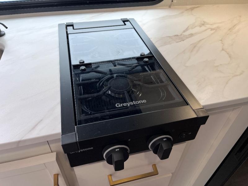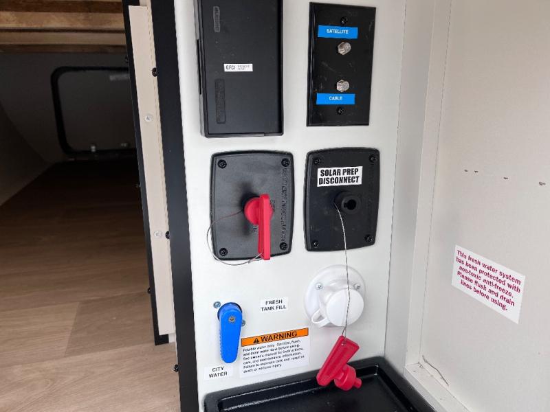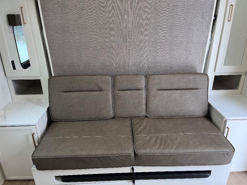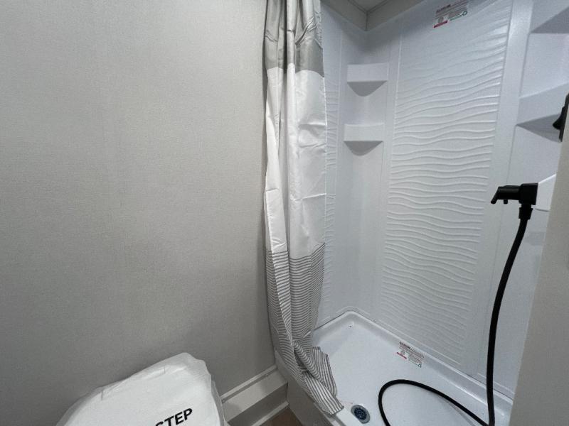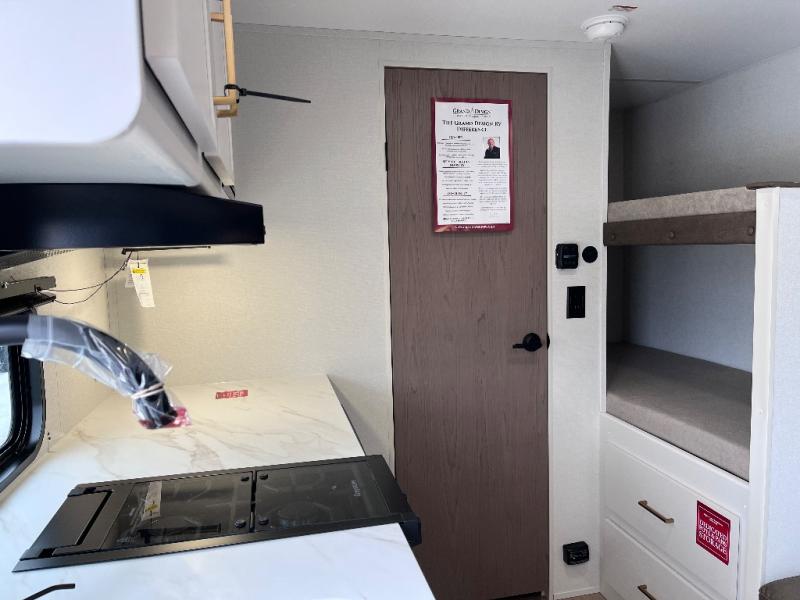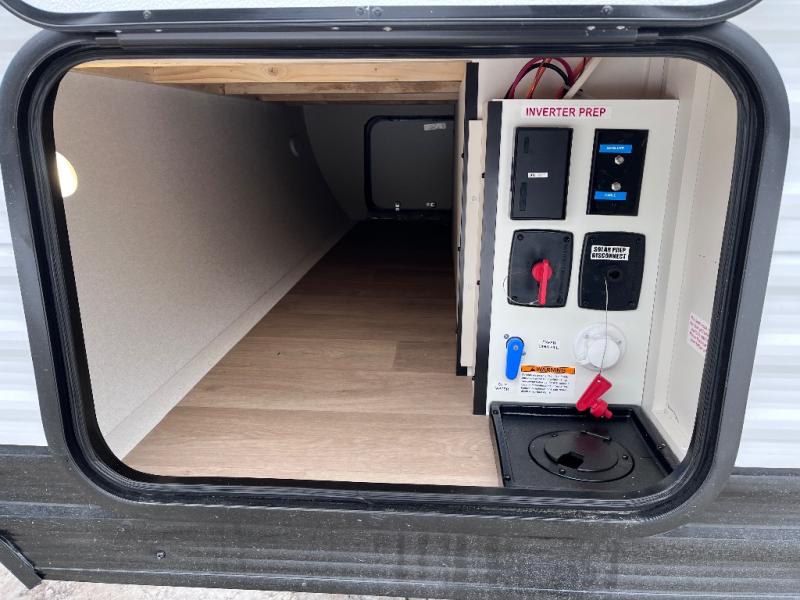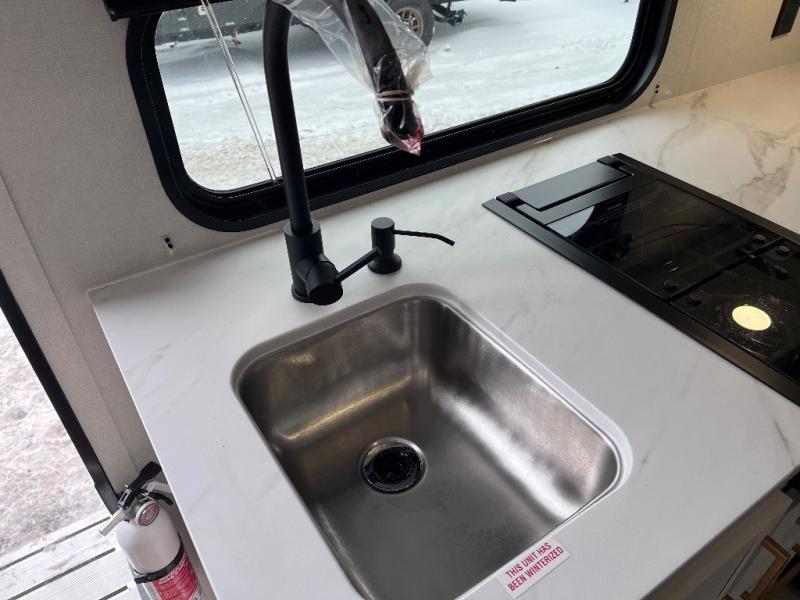 Camping trips to the lake have never been easier than with this travel trailer! The 28" x 67" bunks are right next to the private bath for easy nighttime use, and the front queen bed includes hidden storage for your things. There is also a 66" Jack knife sofa that provides a little more sleeping space for guests. A kitchen lets you cook meals each day and there is an exterior LP quick connect if you want to fire up your own propane grill.