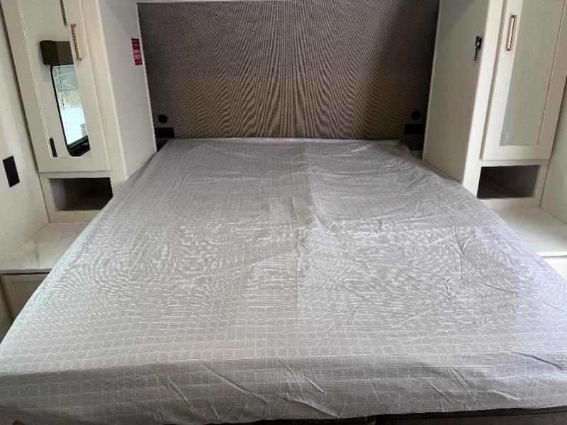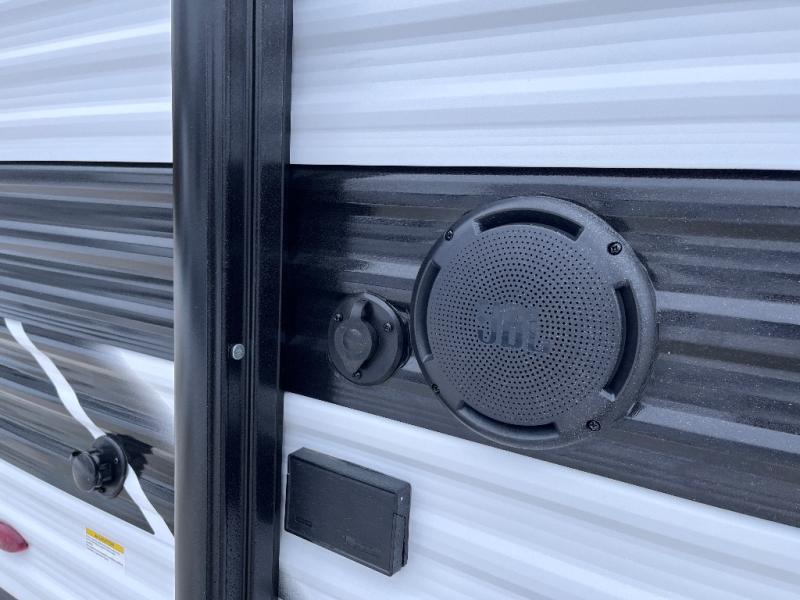 With any Transcend One travel trailer by Grand Design, you will enjoy lightweight towing thanks to their single-axle. There are many interior comforts to make camping easier than ever, such as recessed lighting, residential countertops, and a 6' 6" interior height. Each model is constructed with a heated and enclosed underbelly with suspended tanks, a moisture barrier floor enclosure, and Thermofoil over the roof and front cap for added protection. And a JBL sound system will let you listen to tunes as you visit under the power awning with a Fusion light!