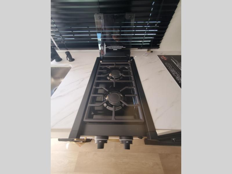 With any Transcend One travel trailer by Grand Design, you will enjoy lightweight towing thanks to their single-axle. There are many interior comforts to make camping easier than ever, such as recessed lighting, residential countertops, and a 6' 6" interior height. Each model is constructed with a heated and enclosed underbelly with suspended tanks, a moisture barrier floor enclosure, and Thermofoil over the roof and front cap for added protection. And a JBL sound system will let you listen to tunes as you visit under the power awning with a Fusion light!