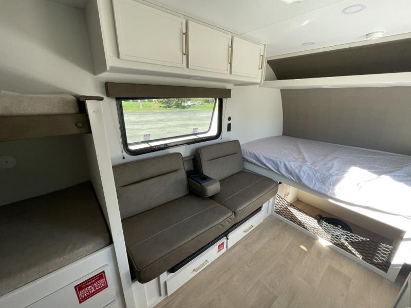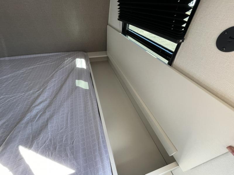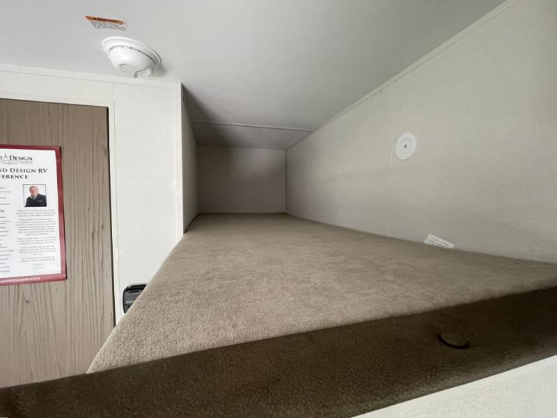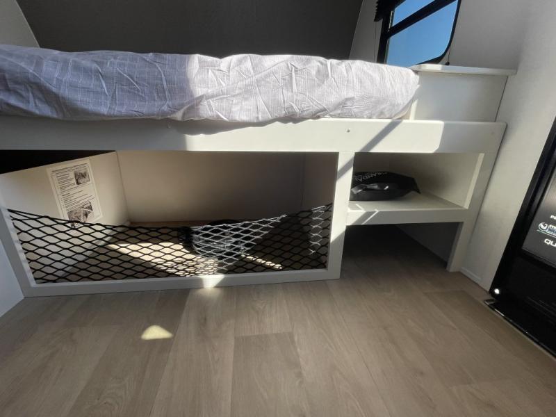 - Comfortable Sleeping Arrangements: A front queen bed with hidden storage, a 66" Jack knife sofa, and 28" x 67" bunks ensure everyone sleeps comfortably.