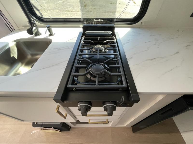 - Fully Equipped Kitchen: Cook meals effortlessly with a deep seated stainless steel sink, high rise faucet with pull-down sprayer, and full kitchen amenities. Plus, use the exterior LP quick connect for your propane grill.
