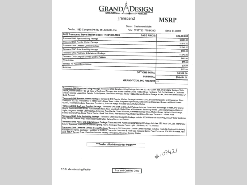 - Off-Grid Capable: Optional Solar Package includes 600W solar prep, 8 cu. ft. 12V refrigerator, solar disconnect, and more.