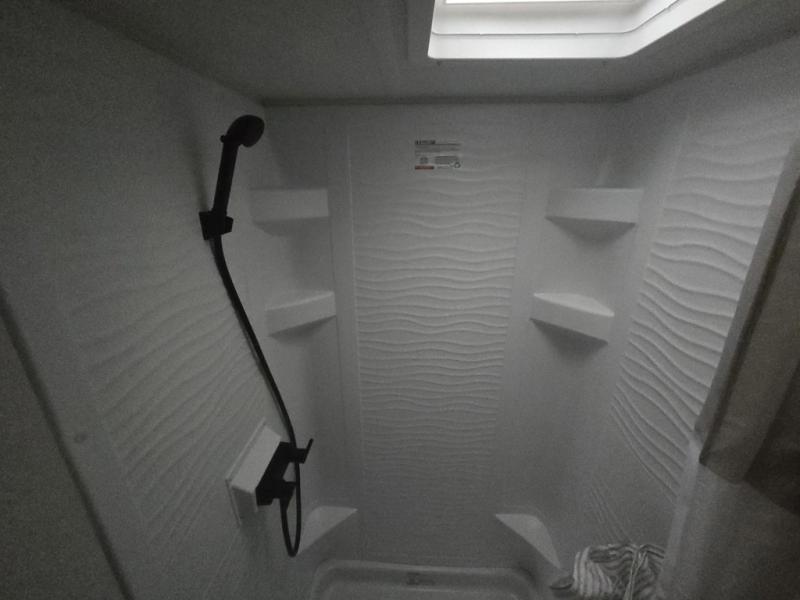 Camping trips to the lake have never been easier than with this travel trailer! The 28" x 67" bunks are right next to the private bath for easy nighttime use, and the front queen bed includes hidden storage for your things. There is also a 66" Jack knife sofa that provides a little more sleeping space for guests. A kitchen lets you cook meals each day and there is an exterior LP quick connect if you want to fire up your own propane grill.