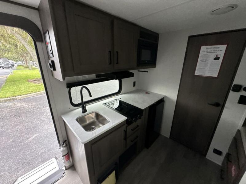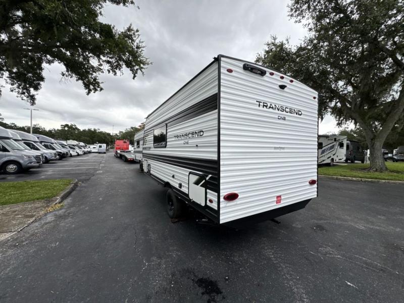 With any Transcend One travel trailer by Grand Design, you will enjoy lightweight towing thanks to their single-axle. There are many interior comforts to make camping easier than ever, such as recessed lighting, residential countertops, and a 6' 6" interior height. Each model is constructed with a heated and enclosed underbelly with suspended tanks, a moisture barrier floor enclosure, and Thermofoil over the roof and front cap for added protection. And a JBL sound system will let you listen to tunes as you visit under the power awning with a Fusion light!