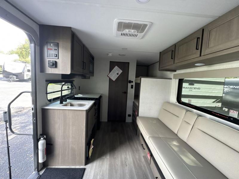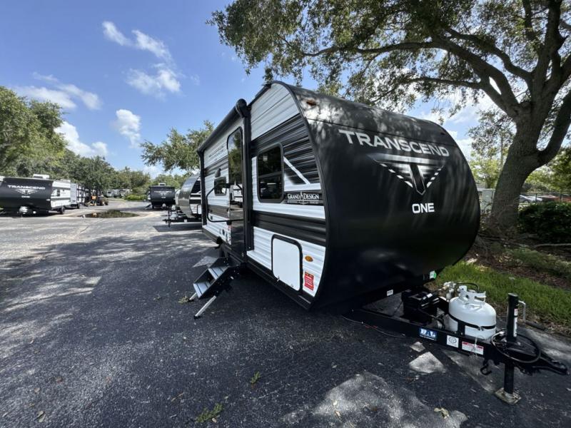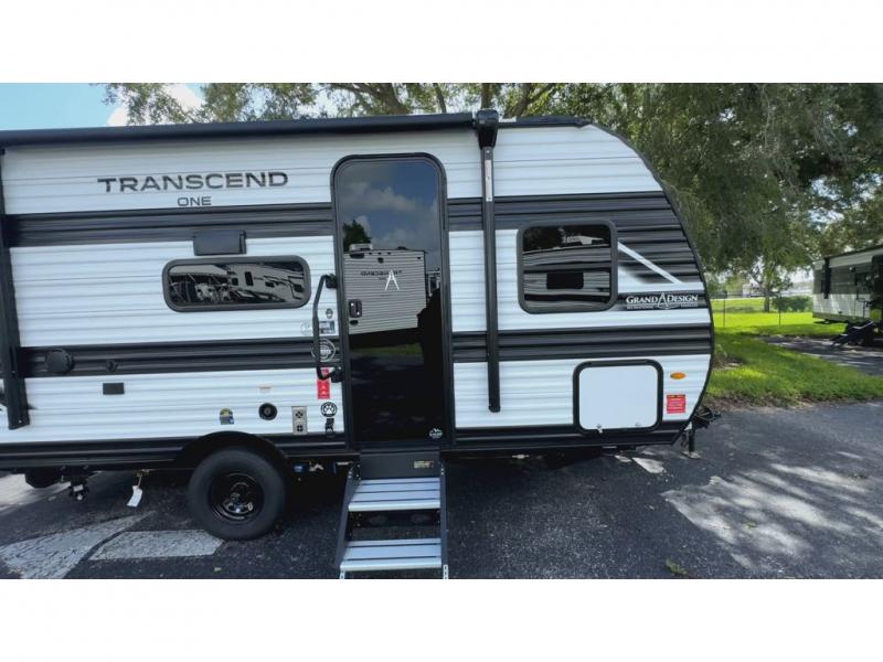 With any Transcend One travel trailer by Grand Design, you will enjoy lightweight towing thanks to their single-axle. There are many interior comforts to make camping easier than ever, such as recessed lighting, residential countertops, and a 6' 6" interior height. Each model is constructed with a heated and enclosed underbelly with suspended tanks, a moisture barrier floor enclosure, and Thermofoil over the roof and front cap for added protection. And a JBL sound system will let you listen to tunes as you visit under the power awning with a Fusion light!