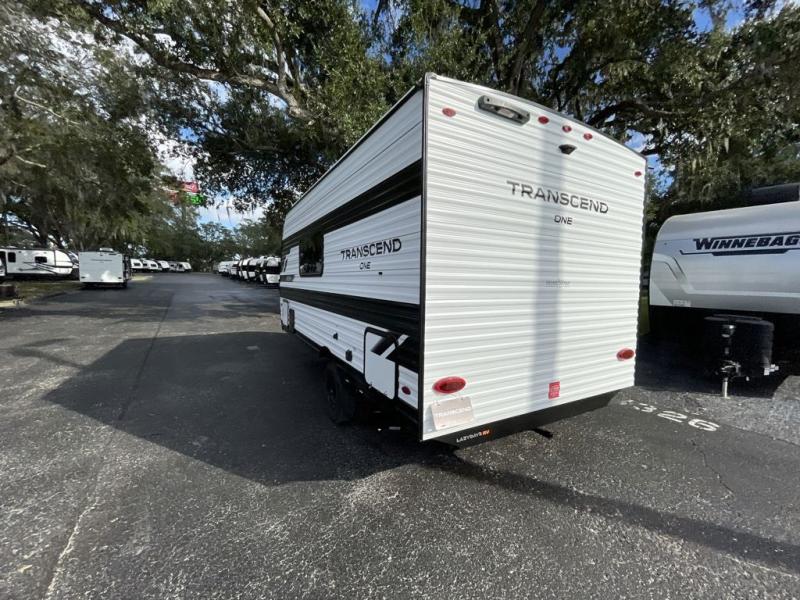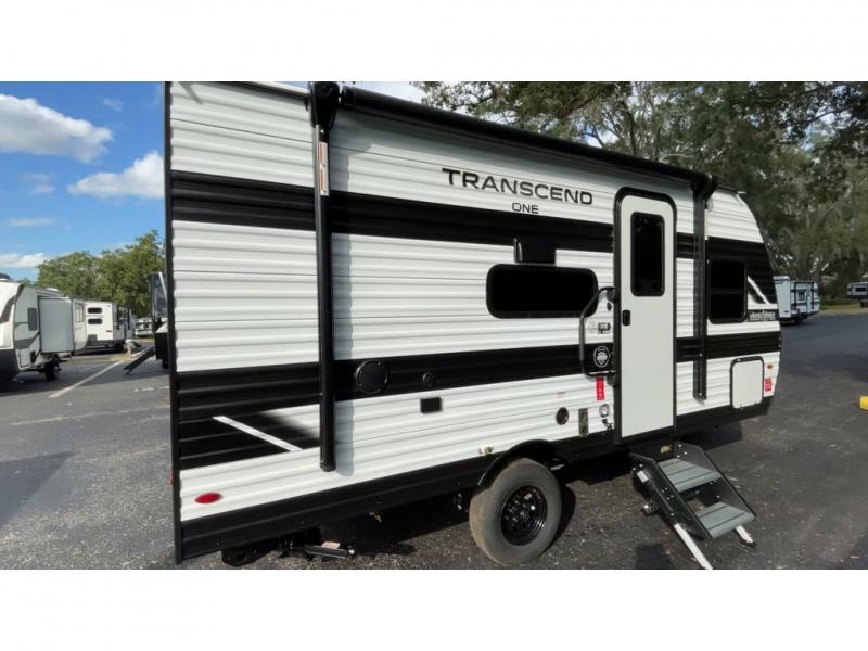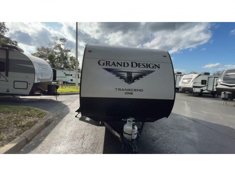 With any Transcend One travel trailer by Grand Design, you will enjoy lightweight towing thanks to their single-axle. There are many interior comforts to make camping easier than ever, such as recessed lighting, residential countertops, and a 6' 6" interior height. Each model is constructed with a heated and enclosed underbelly with suspended tanks, a moisture barrier floor enclosure, and Thermofoil over the roof and front cap for added protection. And a JBL sound system will let you listen to tunes as you visit under the power awning with a Fusion light!