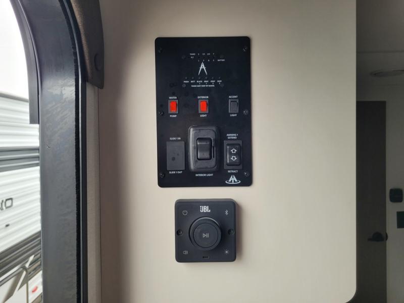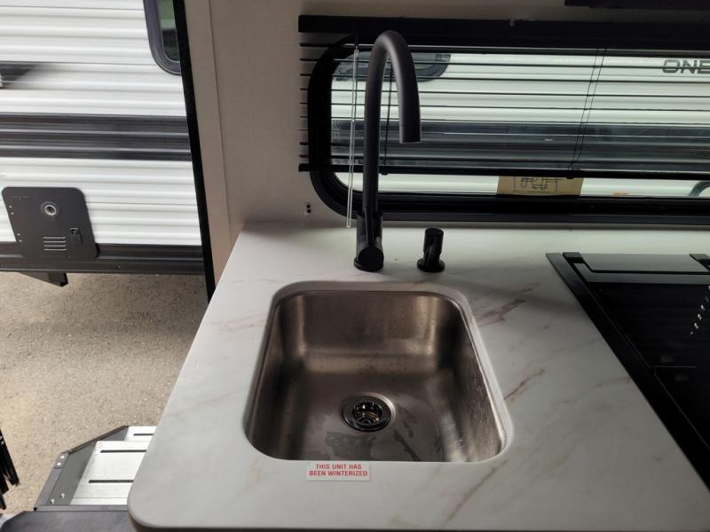 With any Transcend One travel trailer by Grand Design, you will enjoy lightweight towing thanks to their single-axle. There are many interior comforts to make camping easier than ever, such as recessed lighting, residential countertops, and a 6' 6" interior height. Each model is constructed with a heated and enclosed underbelly with suspended tanks, a moisture barrier floor enclosure, and Thermofoil over the roof and front cap for added protection. And a JBL sound system will let you listen to tunes as you visit under the power awning with a Fusion light!