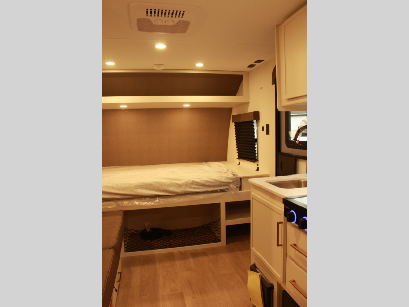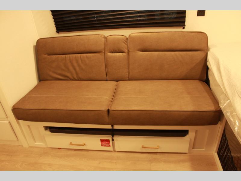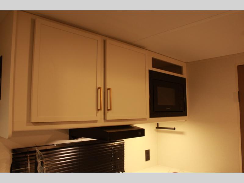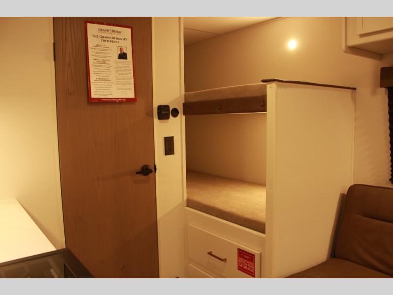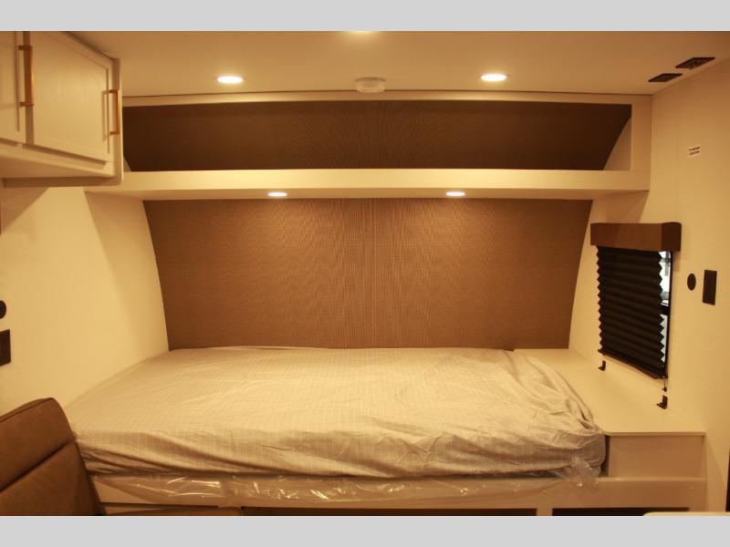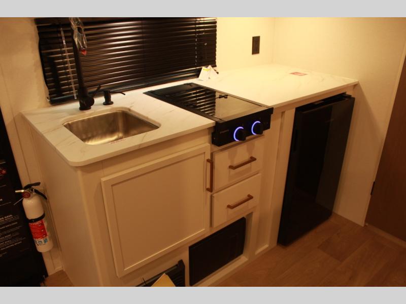 Camping trips to the lake have never been easier than with this travel trailer! The 28" x 67" bunks are right next to the private bath for easy nighttime use, and the front queen bed includes hidden storage for your things. There is also a 66" Jack knife sofa that provides a little more sleeping space for guests. A kitchen lets you cook meals each day and there is an exterior LP quick connect if you want to fire up your own propane grill.
