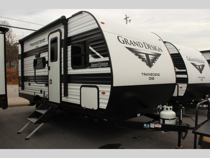 With any Transcend One travel trailer by Grand Design, you will enjoy lightweight towing thanks to their single-axle. There are many interior comforts to make camping easier than ever, such as recessed lighting, residential countertops, and a 6' 6" interior height. Each model is constructed with a heated and enclosed underbelly with suspended tanks, a moisture barrier floor enclosure, and Thermofoil over the roof and front cap for added protection. And a JBL sound system will let you listen to tunes as you visit under the power awning with a Fusion light!