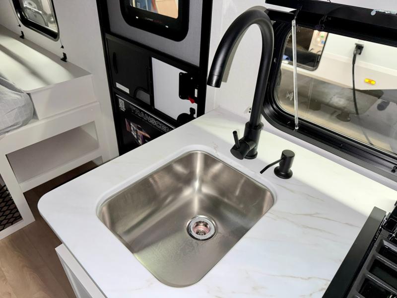 With any Transcend One travel trailer by Grand Design, you will enjoy lightweight towing thanks to their single-axle. There are many interior comforts to make camping easier than ever, such as recessed lighting, residential countertops, and a 6' 6" interior height. Each model is constructed with a heated and enclosed underbelly with suspended tanks, a moisture barrier floor enclosure, and Thermofoil over the roof and front cap for added protection. And a JBL sound system will let you listen to tunes as you visit under the power awning with a Fusion light!