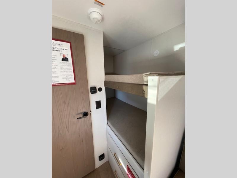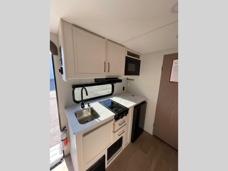 Camping trips to the lake have never been easier than with this travel trailer! The 28" x 67" bunks are right next to the private bath for easy nighttime use, and the front queen bed includes hidden storage for your things. There is also a 66" Jack knife sofa that provides a little more sleeping space for guests. A kitchen lets you cook meals each day and there is an exterior LP quick connect if you want to fire up your own propane grill.