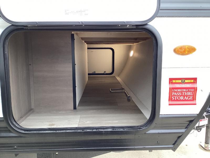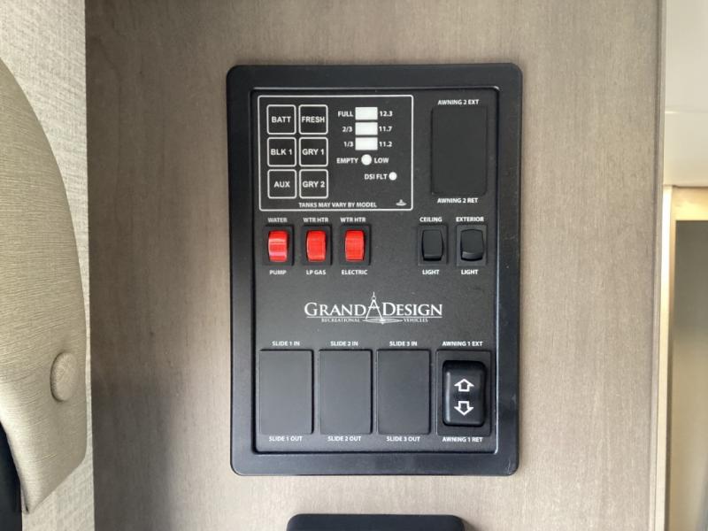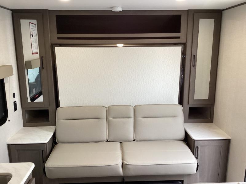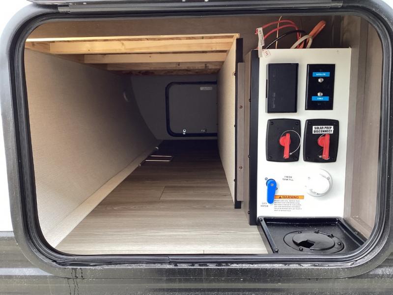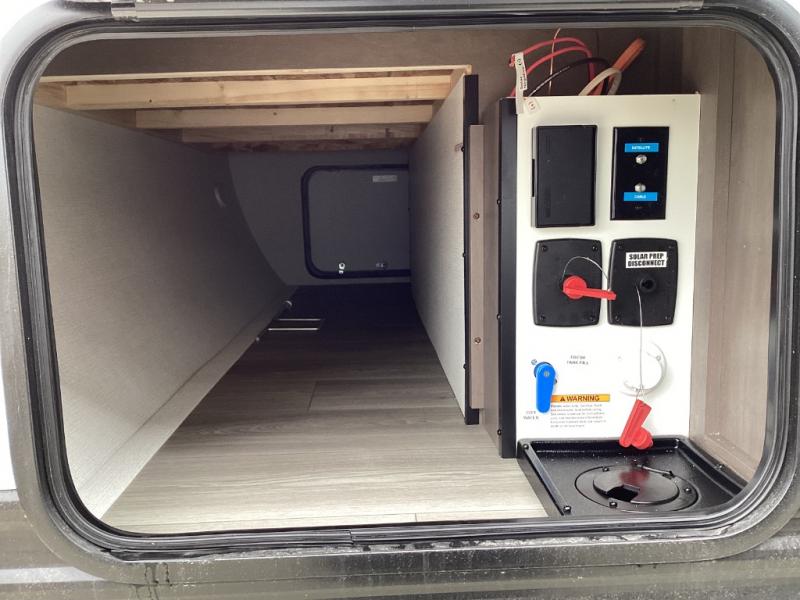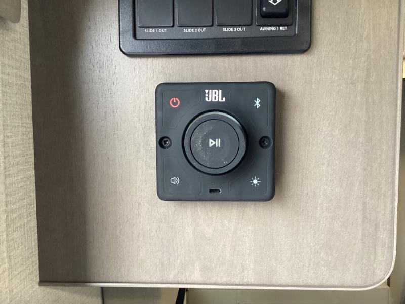 Includes power awning with LED lighting, USB ports, Fusion speaker system, and prepped for solar and backup camera. -