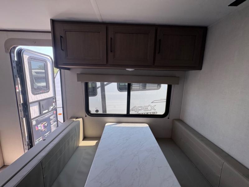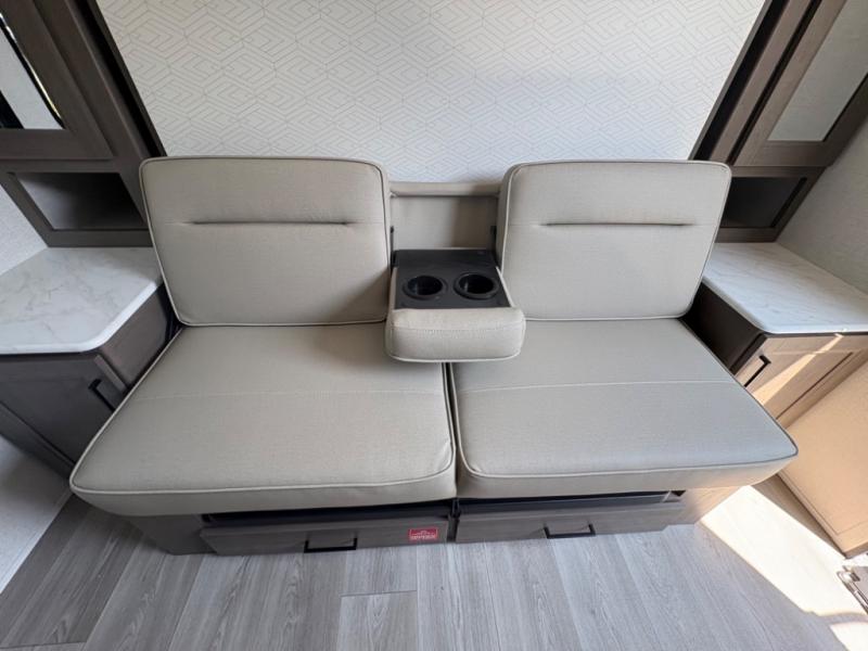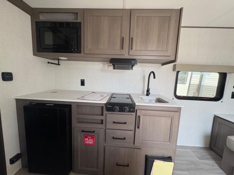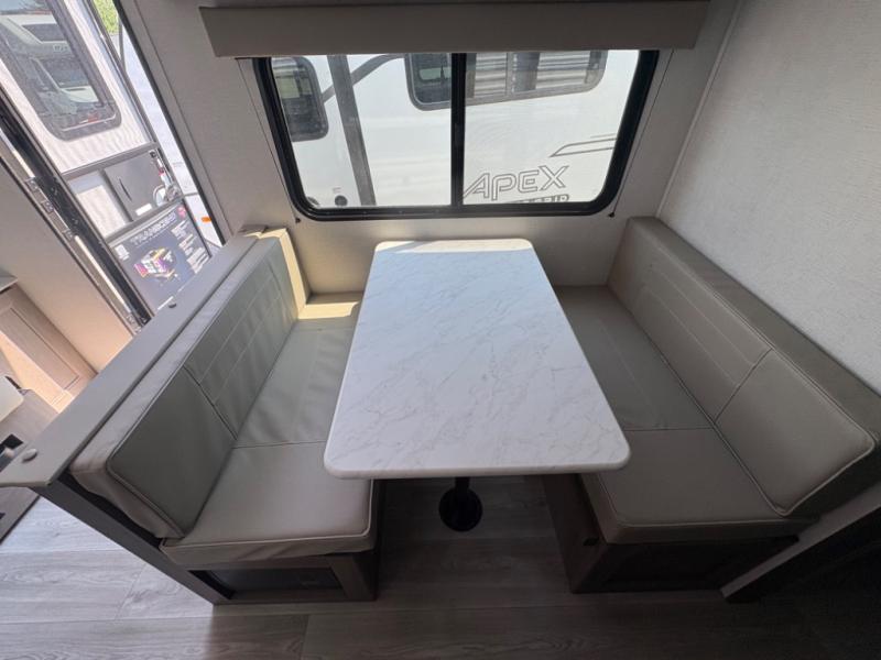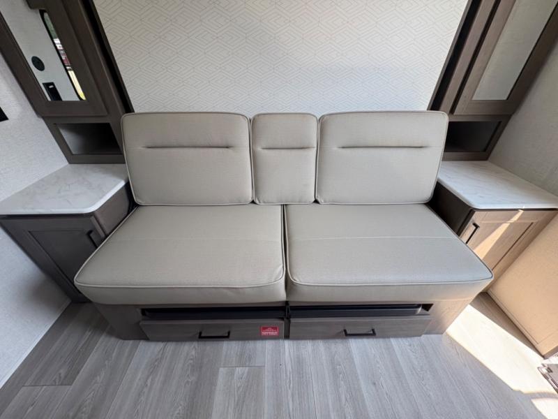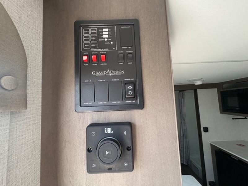 With any Transcend One travel trailer by Grand Design, you will enjoy lightweight towing thanks to their single-axle. There are many interior comforts to make camping easier than ever, such as recessed lighting, residential countertops, and a 6' 6" interior height. Each model is constructed with a heated and enclosed underbelly with suspended tanks, a moisture barrier floor enclosure, and Thermofoil over the roof and front cap for added protection. And a JBL sound system will let you listen to tunes as you visit under the power awning with a Fusion light!