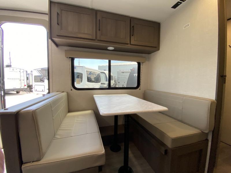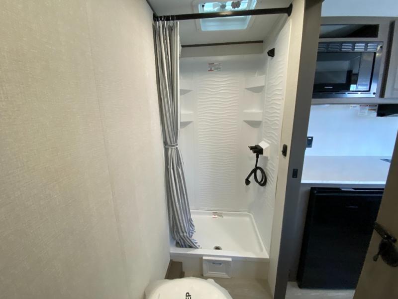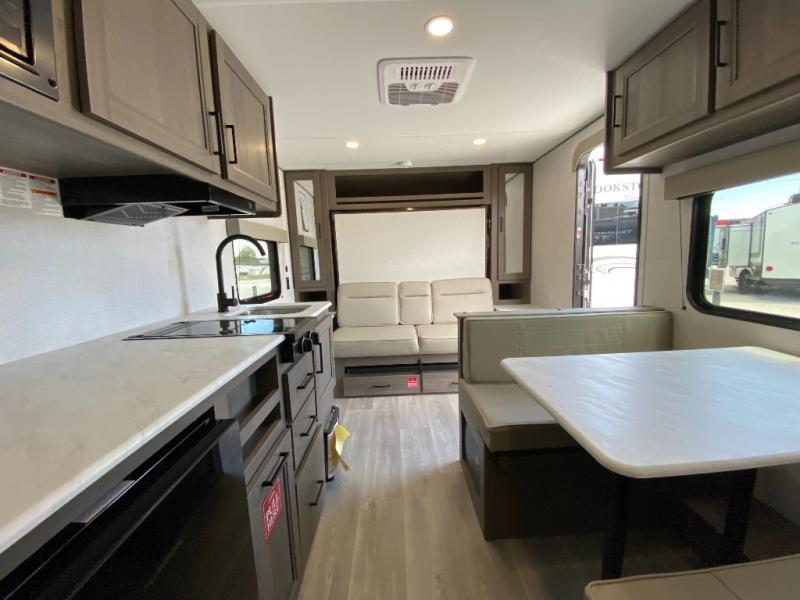 This is the perfect couple's trailer with versatile seating and sleeping space! You'll find a queen-size Murphy bed up front with storage space beside and above plus a full rear bath for added privacy. Once you've made lunch in the full kitchen, you can dine at the booth dinette, or take your plate outdoors to sit under the 10' power awning. You'll also find an unobstructed pass-thru storage outside that will be perfect for fishing poles, lawn chairs, tools and more!