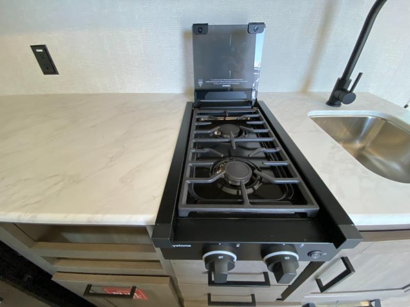 With any Transcend One travel trailer by Grand Design, you will enjoy lightweight towing thanks to their single-axle. There are many interior comforts to make camping easier than ever, such as recessed lighting, residential countertops, and a 6' 6" interior height. Each model is constructed with a heated and enclosed underbelly with suspended tanks, a moisture barrier floor enclosure, and Thermofoil over the roof and front cap for added protection. And a JBL sound system will let you listen to tunes as you visit under the power awning with a Fusion light!