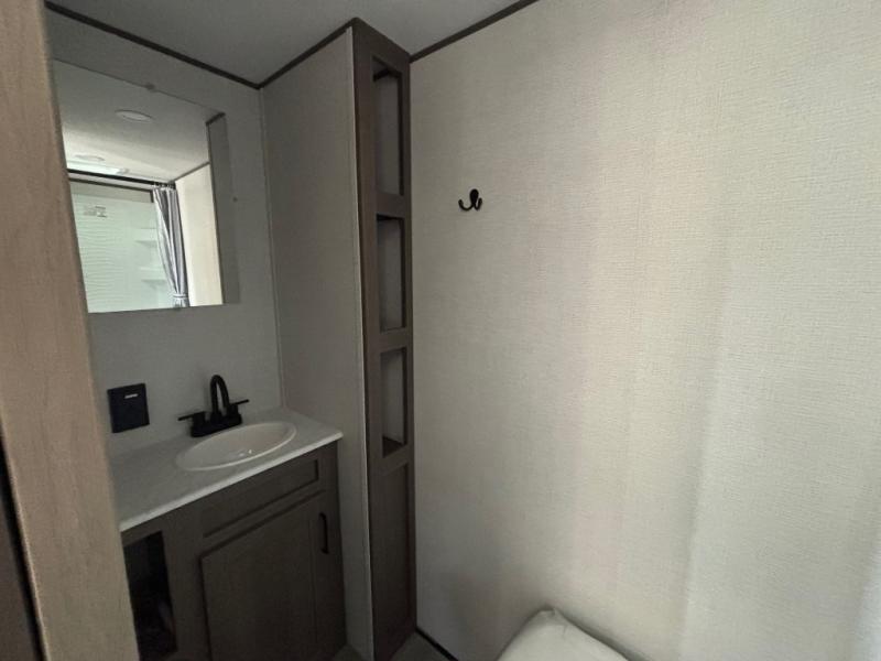 This is the perfect couple's trailer with versatile seating and sleeping space! You'll find a queen-size Murphy bed up front with storage space beside and above plus a full rear bath for added privacy. Once you've made lunch in the full kitchen, you can dine at the booth dinette, or take your plate outdoors to sit under the 10' power awning. You'll also find an unobstructed pass-thru storage outside that will be perfect for fishing poles, lawn chairs, tools and more!