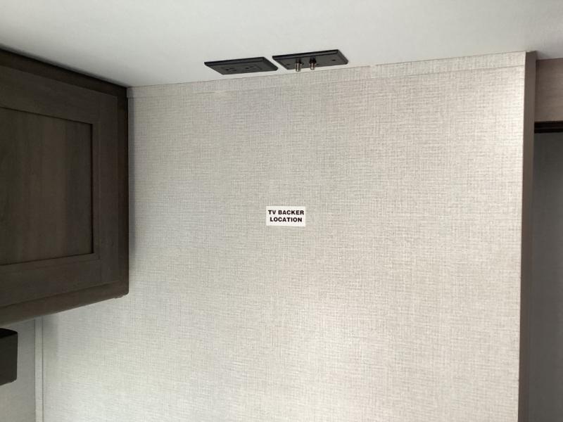 Laminated exterior, solar prep, backup camera readiness, USB charging ports, and a power awning with LED lights for convenience and energy efficiency. -
