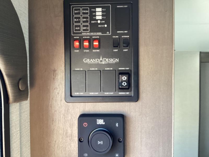 JBL sound system will let you listen to tunes as you visit under the power awning with a Fusion light!