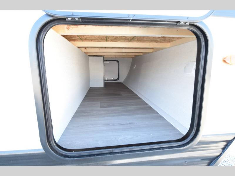 - Comfortable Sleeping Arrangements: A front queen bed with hidden storage, a 66" Jack knife sofa, and 28" x 67" bunks ensure everyone sleeps comfortably.