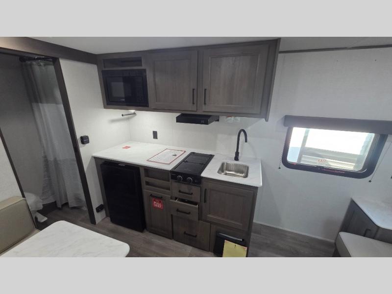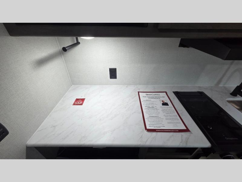 With any Transcend One travel trailer by Grand Design, you will enjoy lightweight towing thanks to their single-axle. There are many interior comforts to make camping easier than ever, such as recessed lighting, residential countertops, and a 6' 6" interior height. Each model is constructed with a heated and enclosed underbelly with suspended tanks, a moisture barrier floor enclosure, and Thermofoil over the roof and front cap for added protection. And a JBL sound system will let you listen to tunes as you visit under the power awning with a Fusion light!