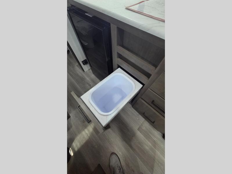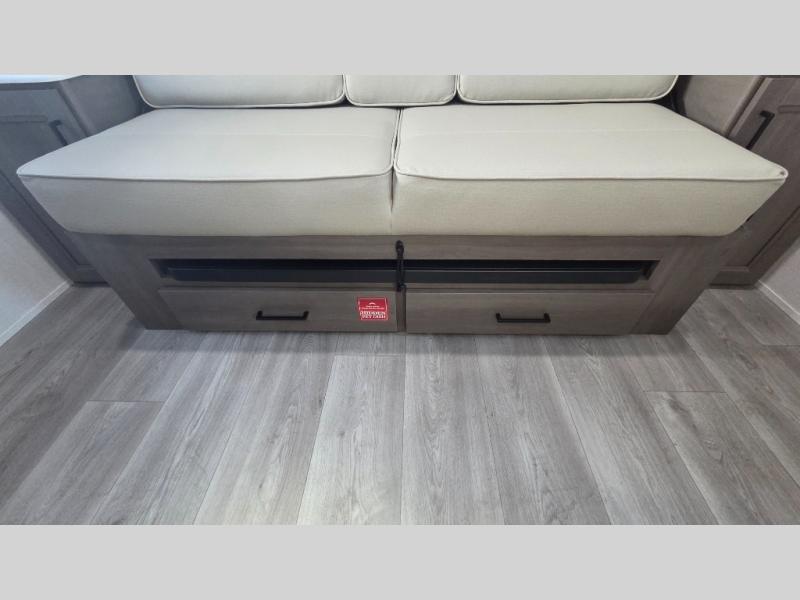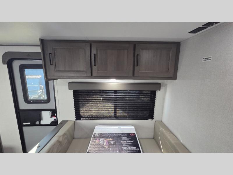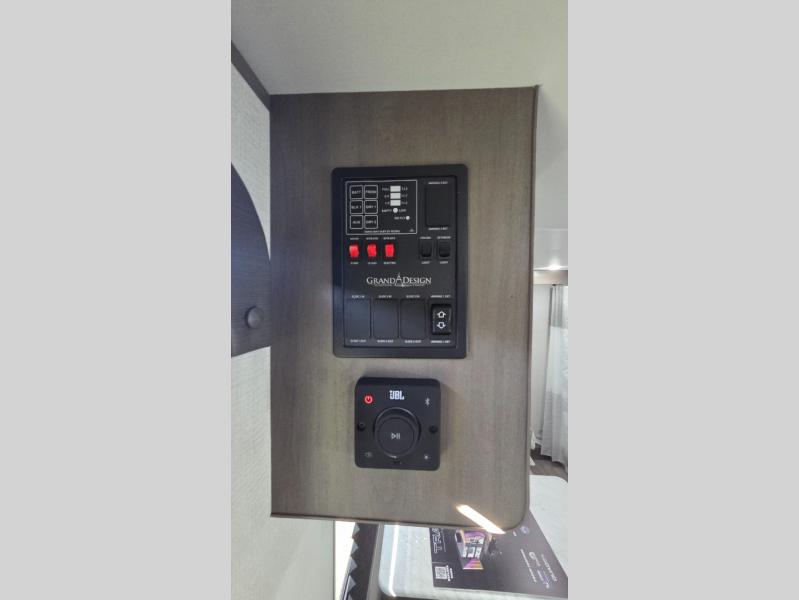 With any Transcend One travel trailer by Grand Design, you will enjoy lightweight towing thanks to their single-axle. There are many interior comforts to make camping easier than ever, such as recessed lighting, residential countertops, and a 6' 6" interior height. Each model is constructed with a heated and enclosed underbelly with suspended tanks, a moisture barrier floor enclosure, and Thermofoil over the roof and front cap for added protection. And a JBL sound system will let you listen to tunes as you visit under the power awning with a Fusion light!