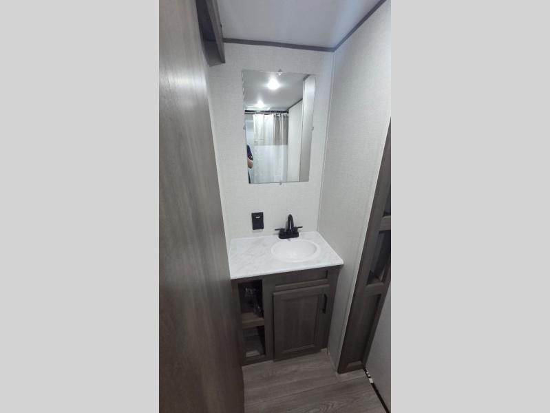 This is the perfect couple's trailer with versatile seating and sleeping space! You'll find a queen-size Murphy bed up front with storage space beside and above plus a full rear bath for added privacy. Once you've made lunch in the full kitchen, you can dine at the booth dinette, or take your plate outdoors to sit under the 10' power awning. You'll also find an unobstructed pass-thru storage outside that will be perfect for fishing poles, lawn chairs, tools and more!
