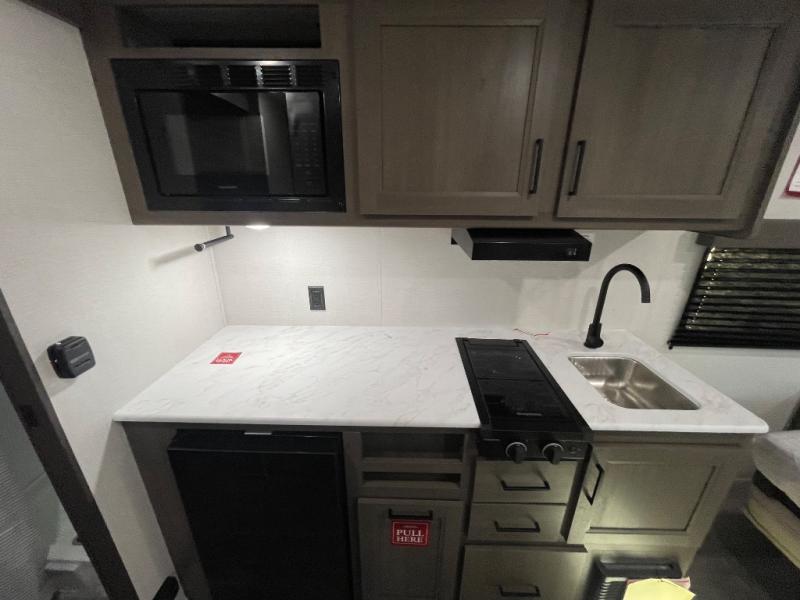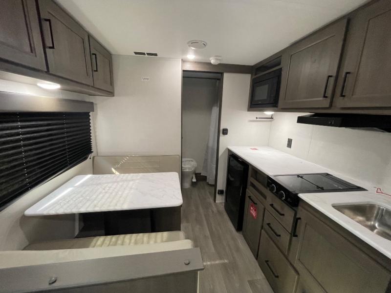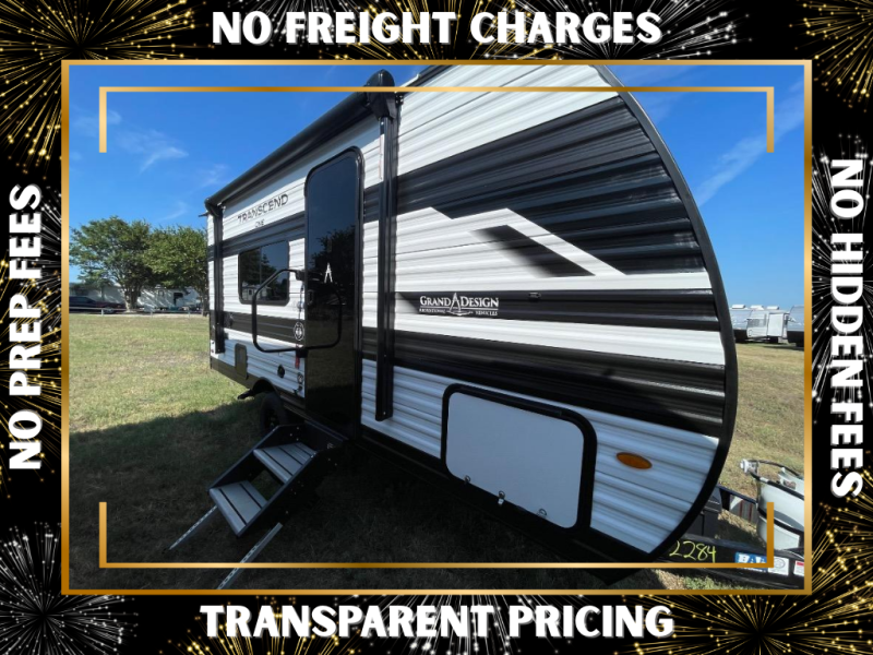 With any Transcend One travel trailer by Grand Design, you will enjoy lightweight towing thanks to their single-axle. There are many interior comforts to make camping easier than ever, such as recessed lighting, residential countertops, and a 6' 6" interior height. Each model is constructed with a heated and enclosed underbelly with suspended tanks, a moisture barrier floor enclosure, and Thermofoil over the roof and front cap for added protection. And a JBL sound system will let you listen to tunes as you visit under the power awning with a Fusion light!