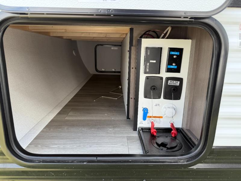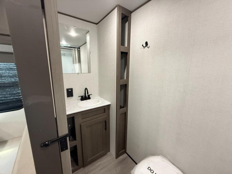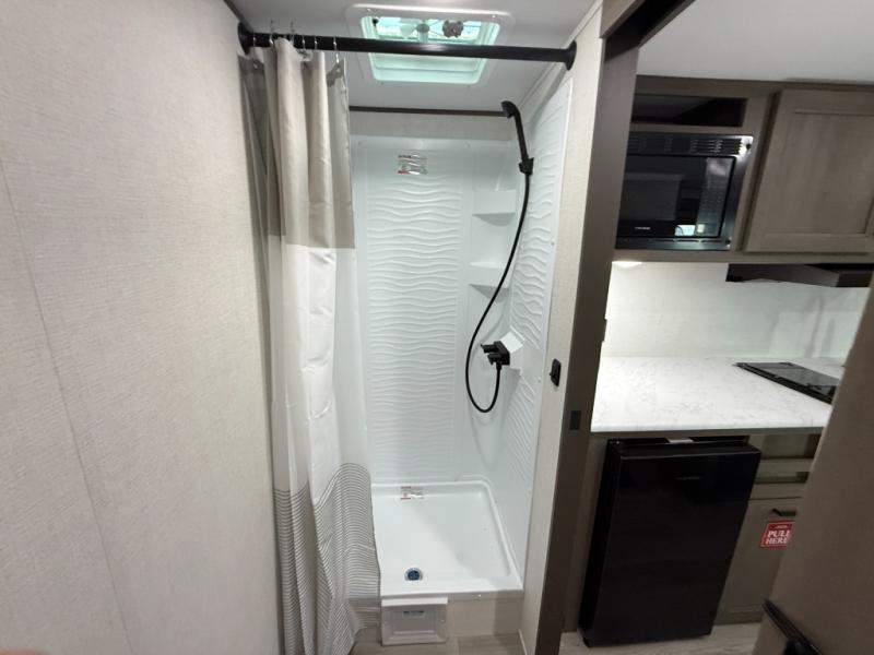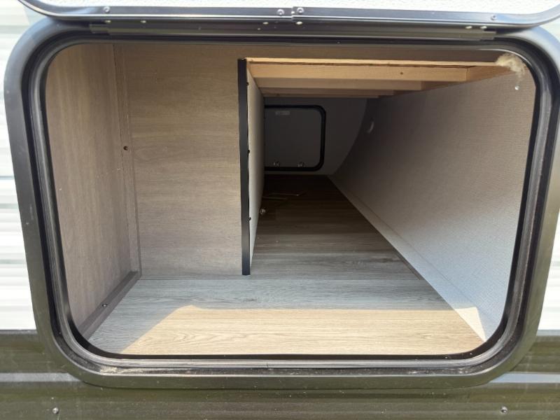 This is the perfect couple's trailer with versatile seating and sleeping space! You'll find a queen-size Murphy bed up front with storage space beside and above plus a full rear bath for added privacy. Once you've made lunch in the full kitchen, you can dine at the booth dinette, or take your plate outdoors to sit under the 10' power awning. You'll also find an unobstructed pass-thru storage outside that will be perfect for fishing poles, lawn chairs, tools and more!